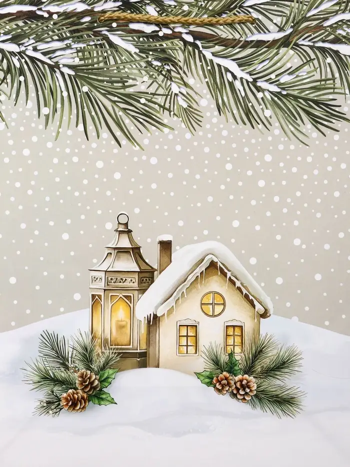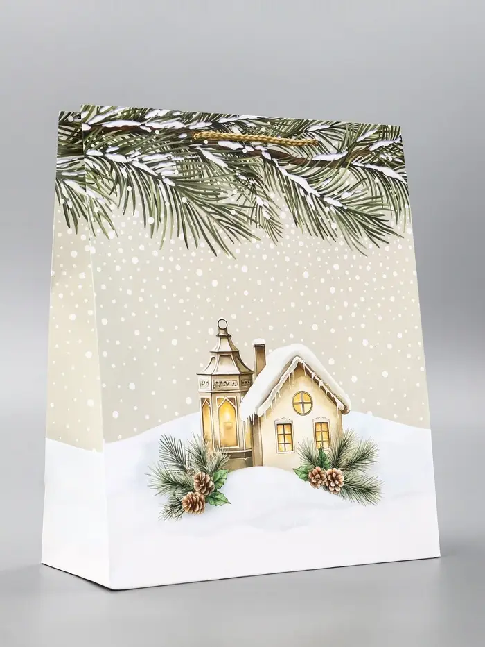 Пакет подарочный новогодний ламинированный, «Новогодний домик» , 26×12×32 см