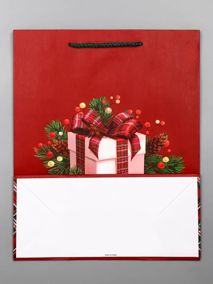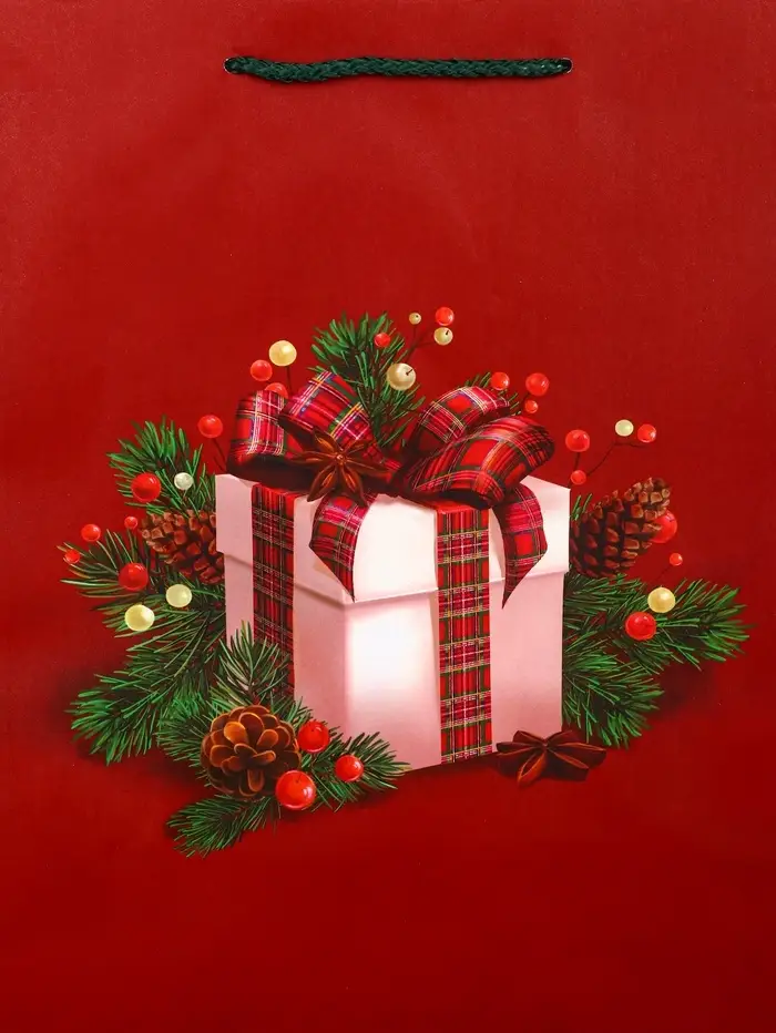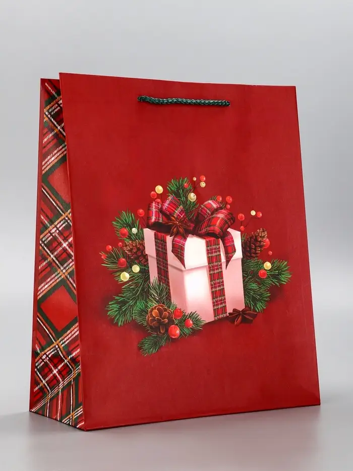 Пакет подарочный новогодний ламинированный, «Подарки» , 26×12×32 см