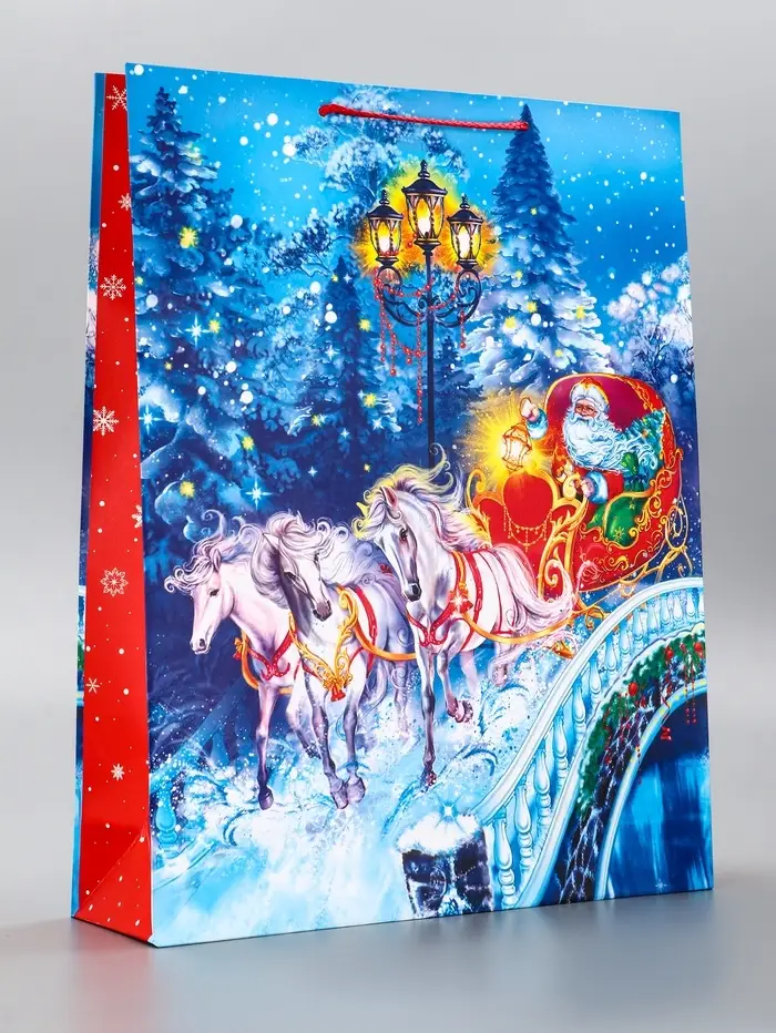 Пакет подарочный новогодний ламинированный, «Везем подарки» , 33×10×42.5 см