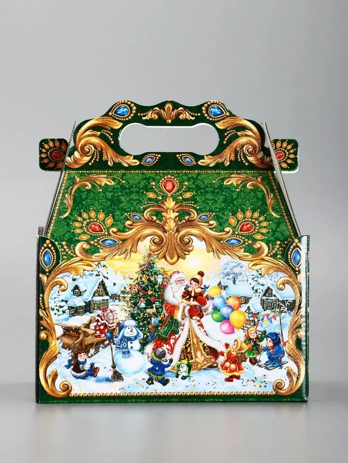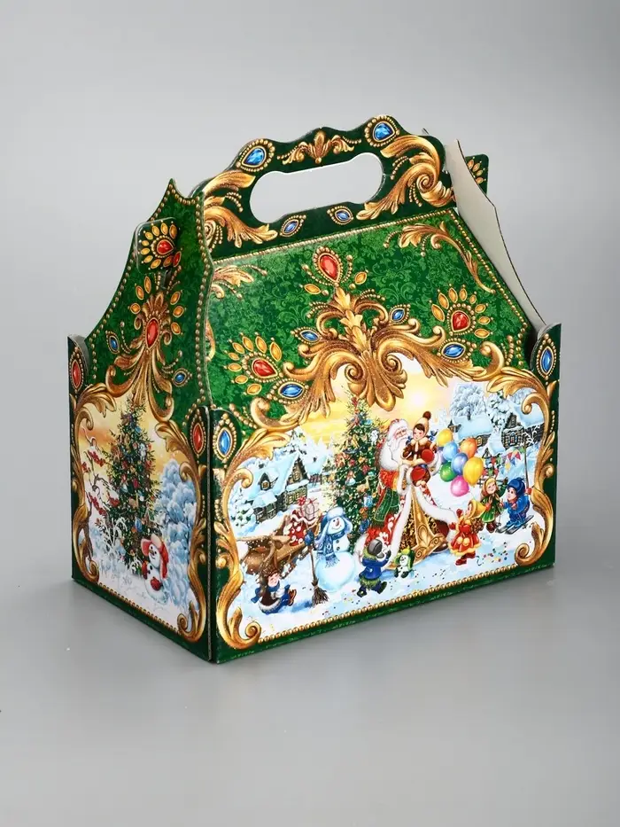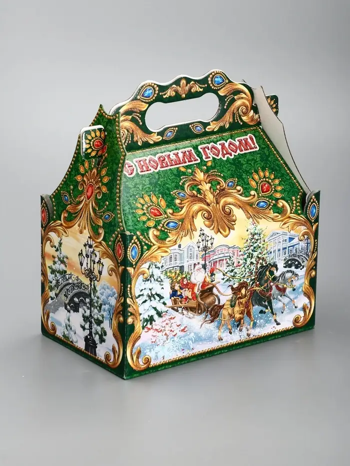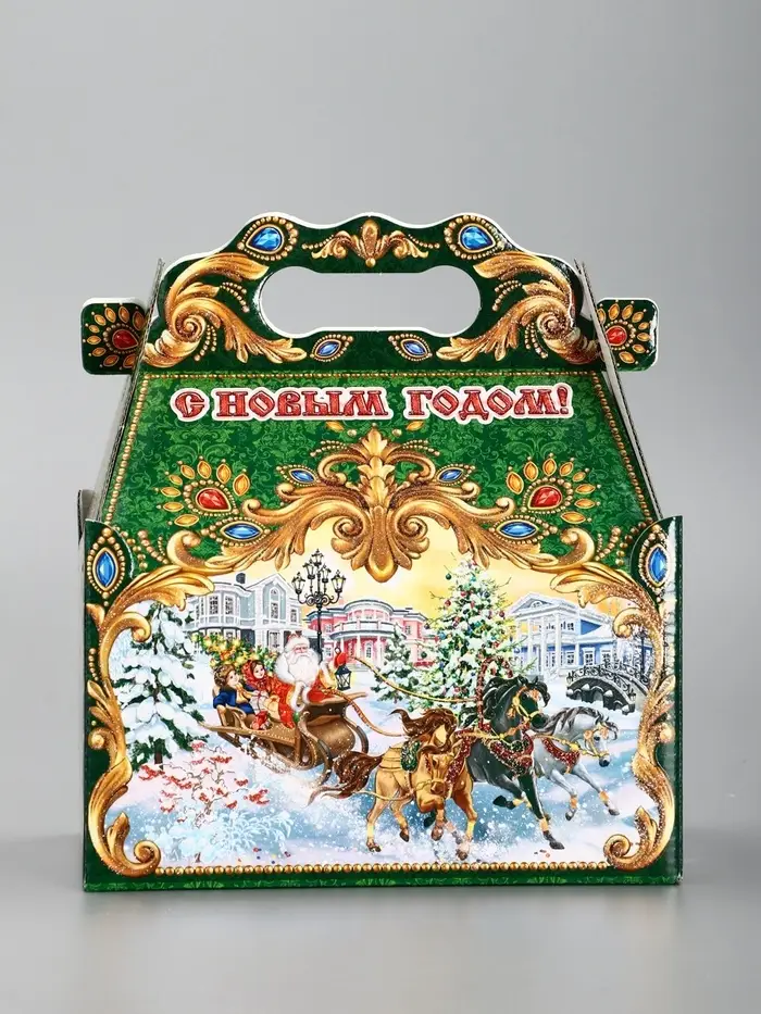 Подарочная новогодняя коробка «ЧУДО ТРОЙКА в золоте» 20×12×19 см