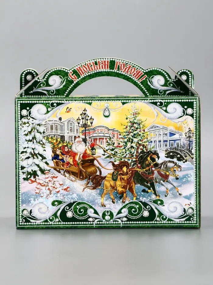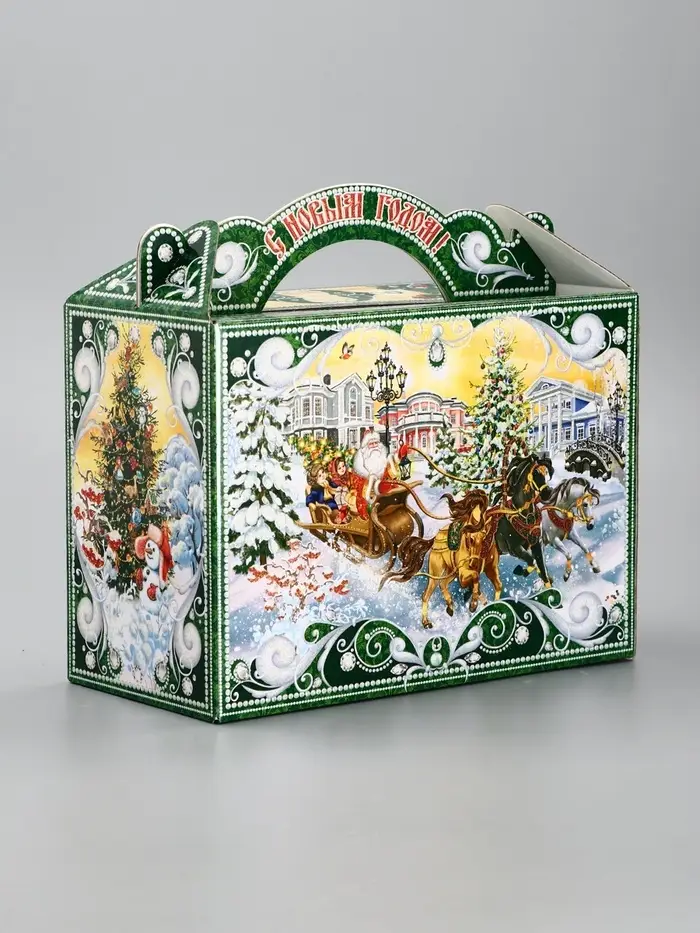 Подарочная новогодняя коробка "Чудо-тройка", для сладких подарков, 25×12×24 см