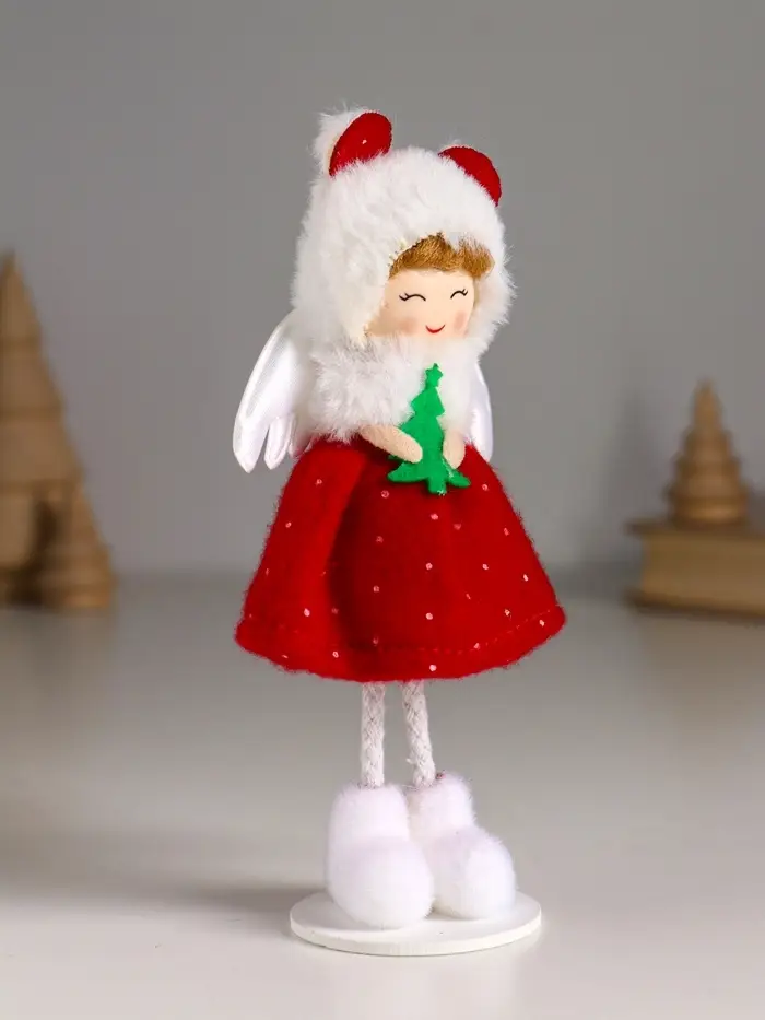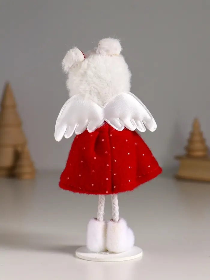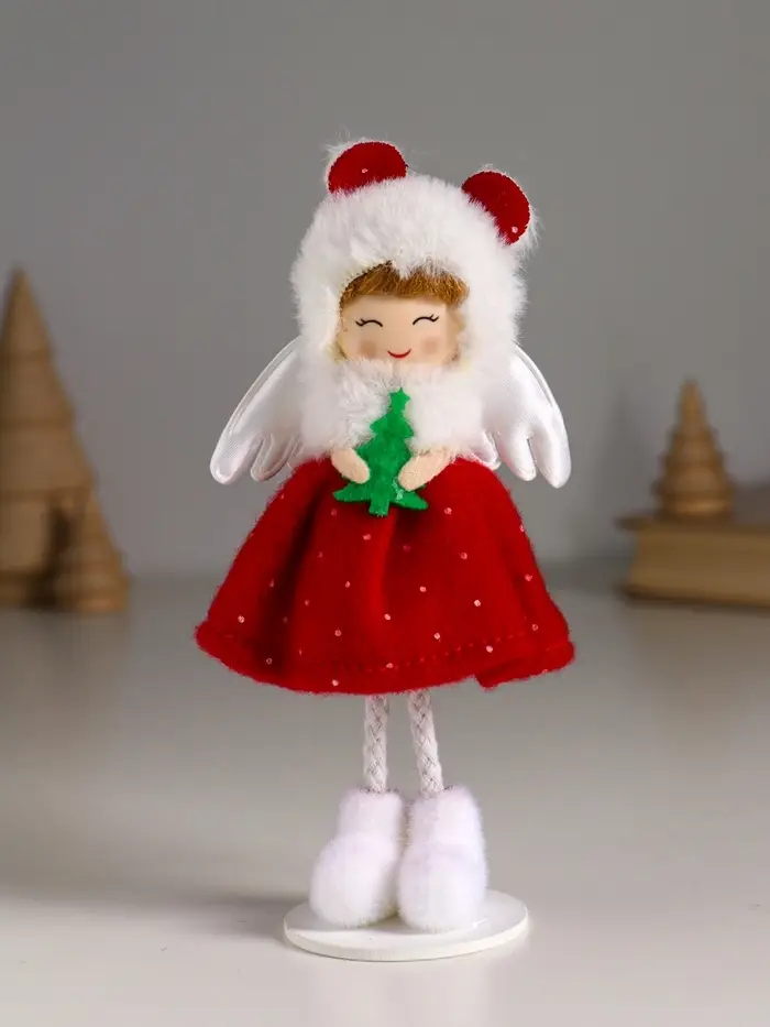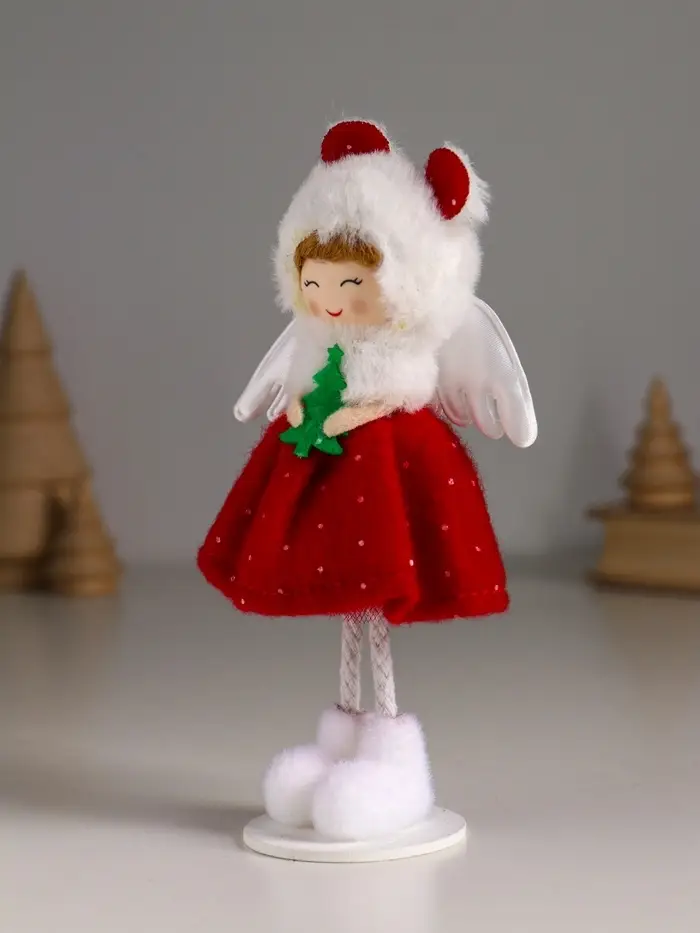 Кукла интерьерная "Ангелочек в красном платье, с ёлочкой в руках" 8х5,5х16 см