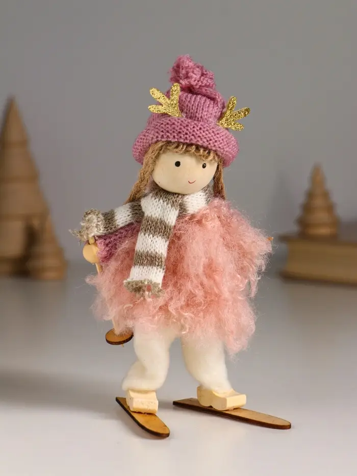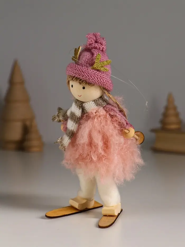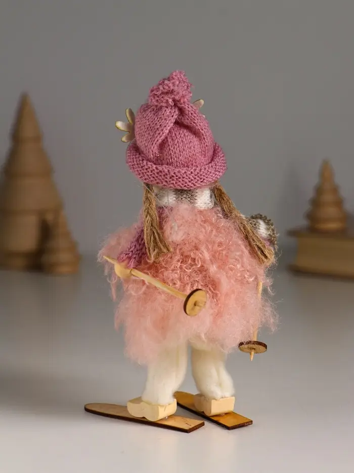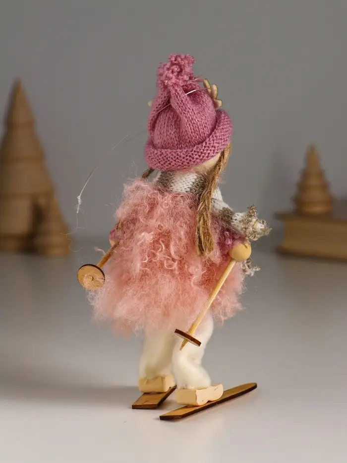 Кукла интерьерная "Малышка в розовом на лыжах" 6,5х6,3х15 см