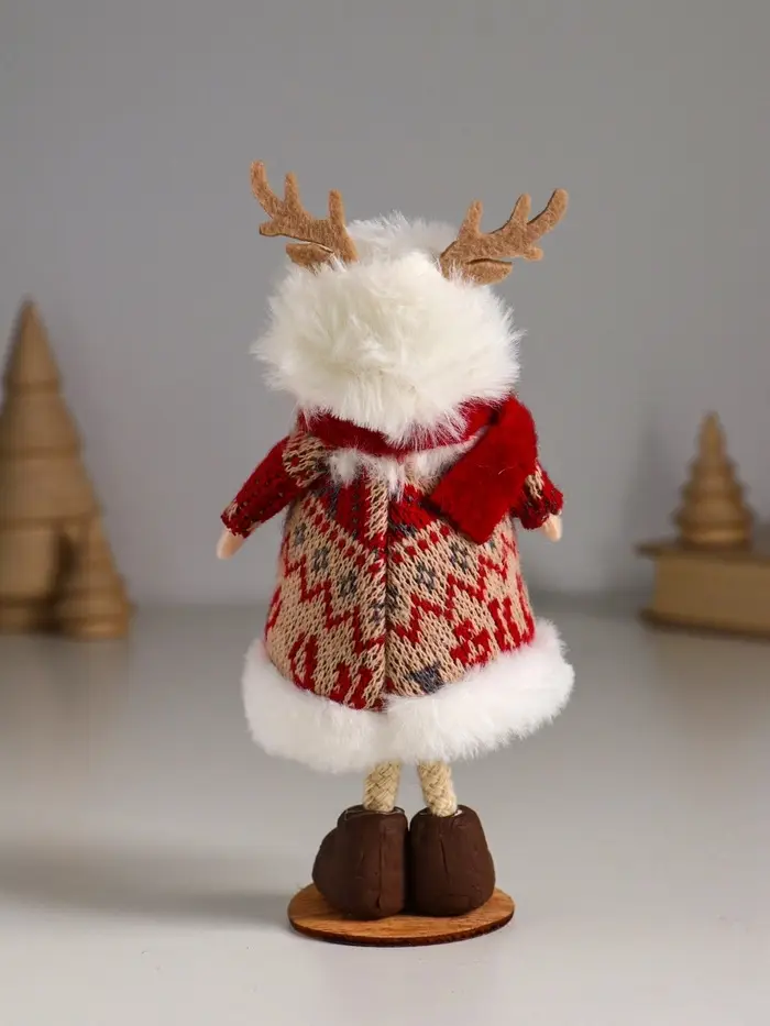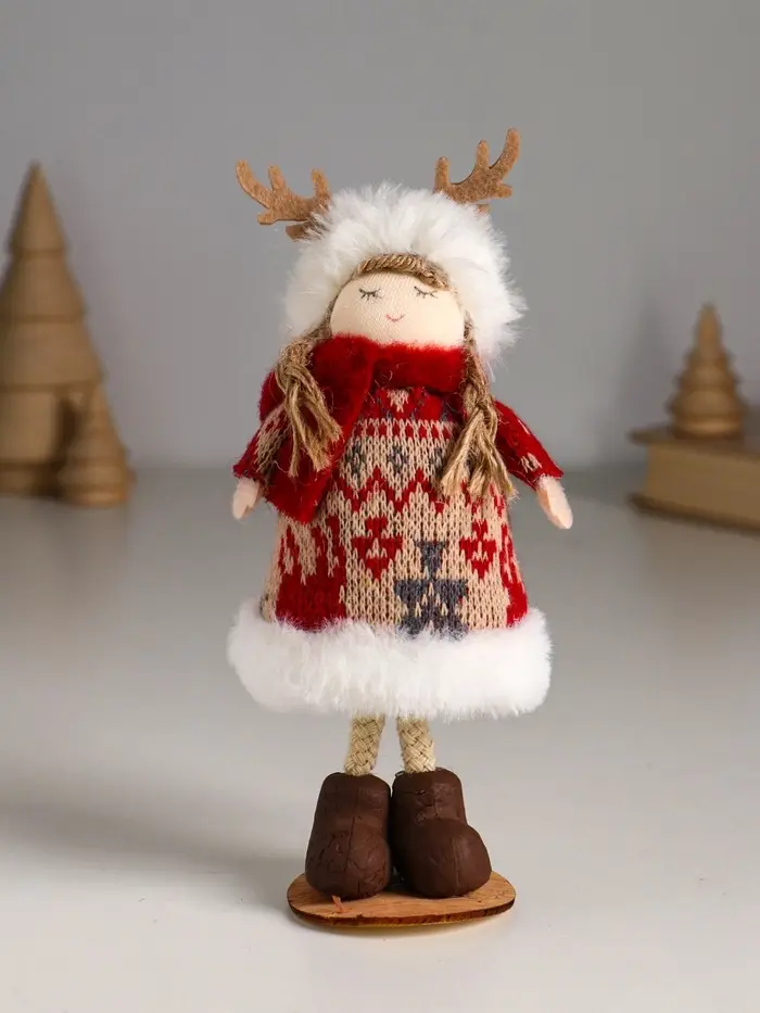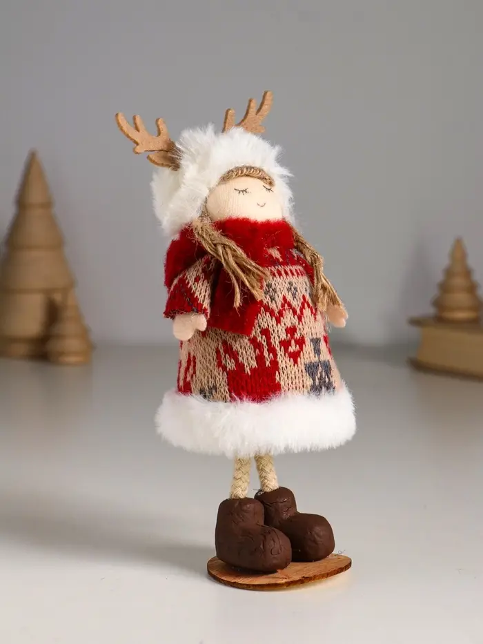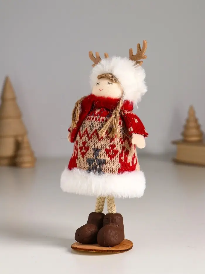 Кукла интерьерная "Малышка в вязаном платье в шапке с рожками" 6,5х6,5х16,5 см