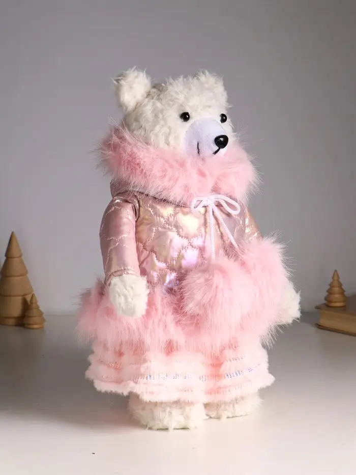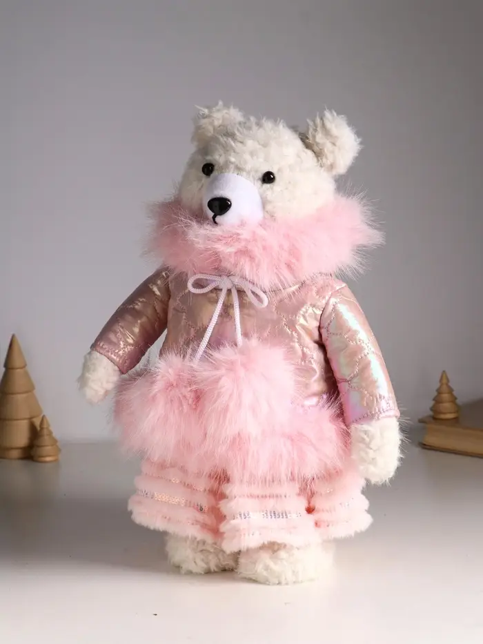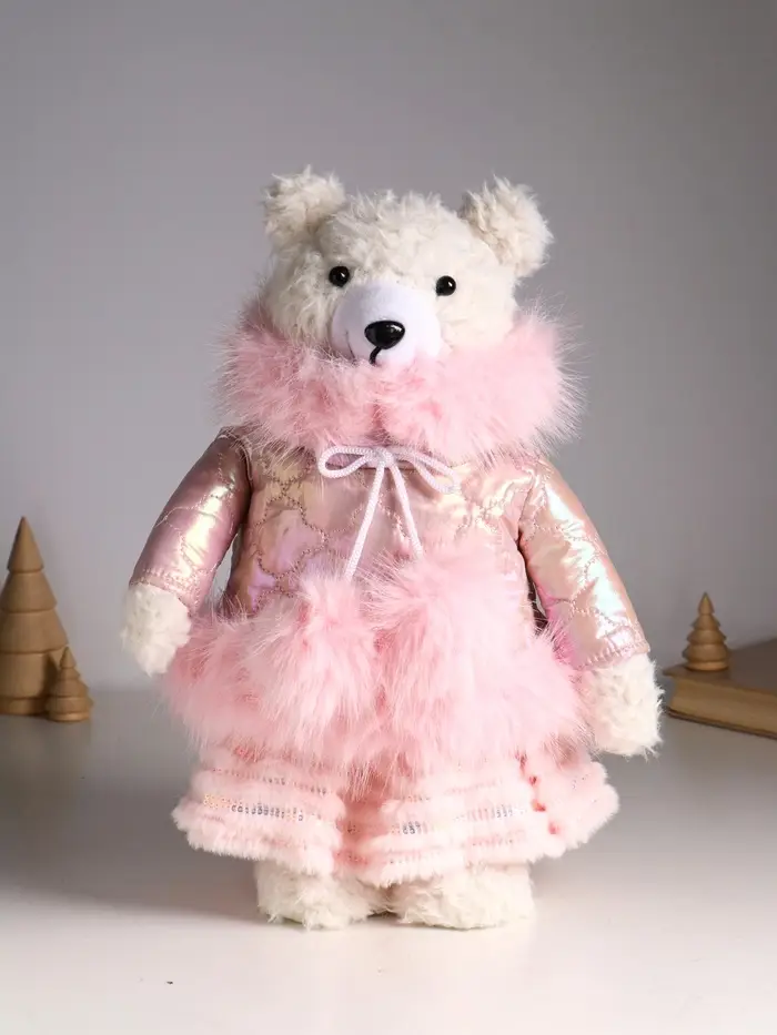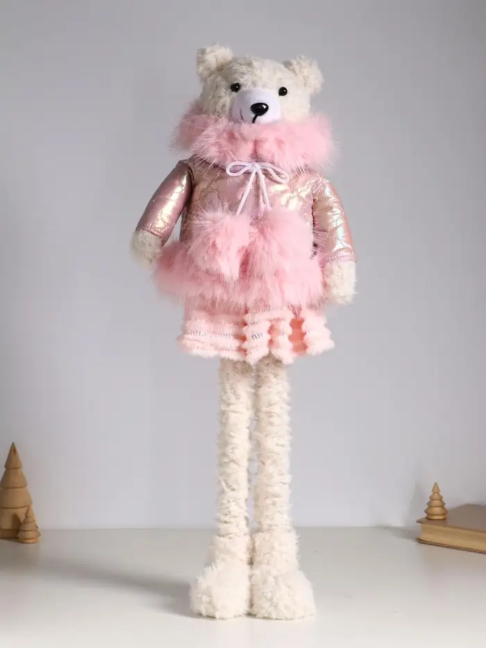 Кукла интерьерная "Медведица в розовом пуховике" раздвижная 37-65 см 23х16х37 см