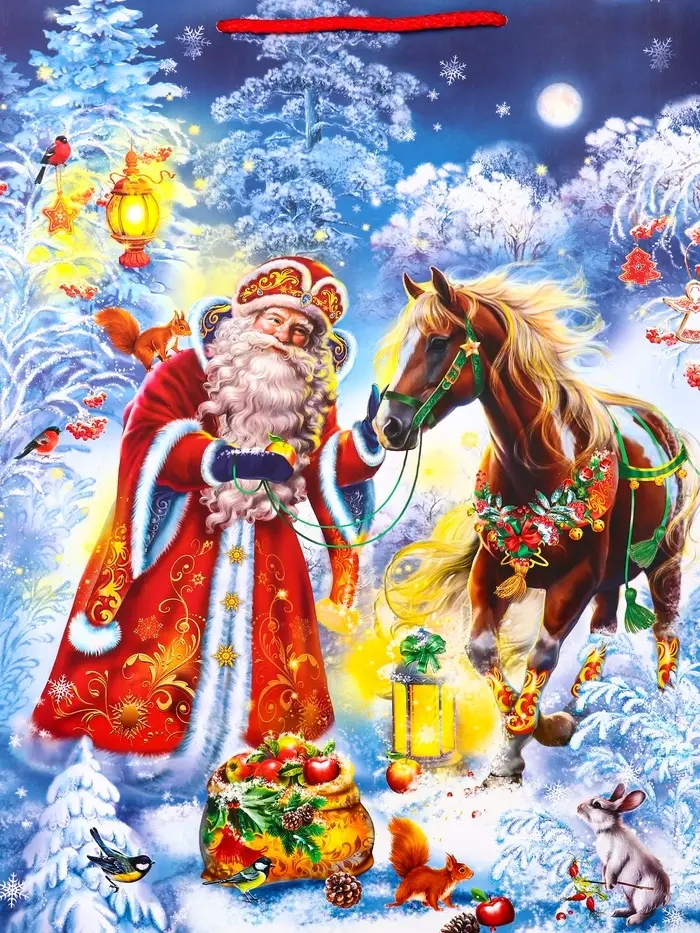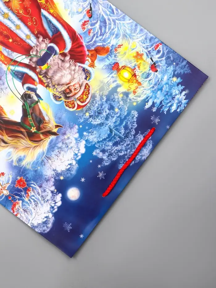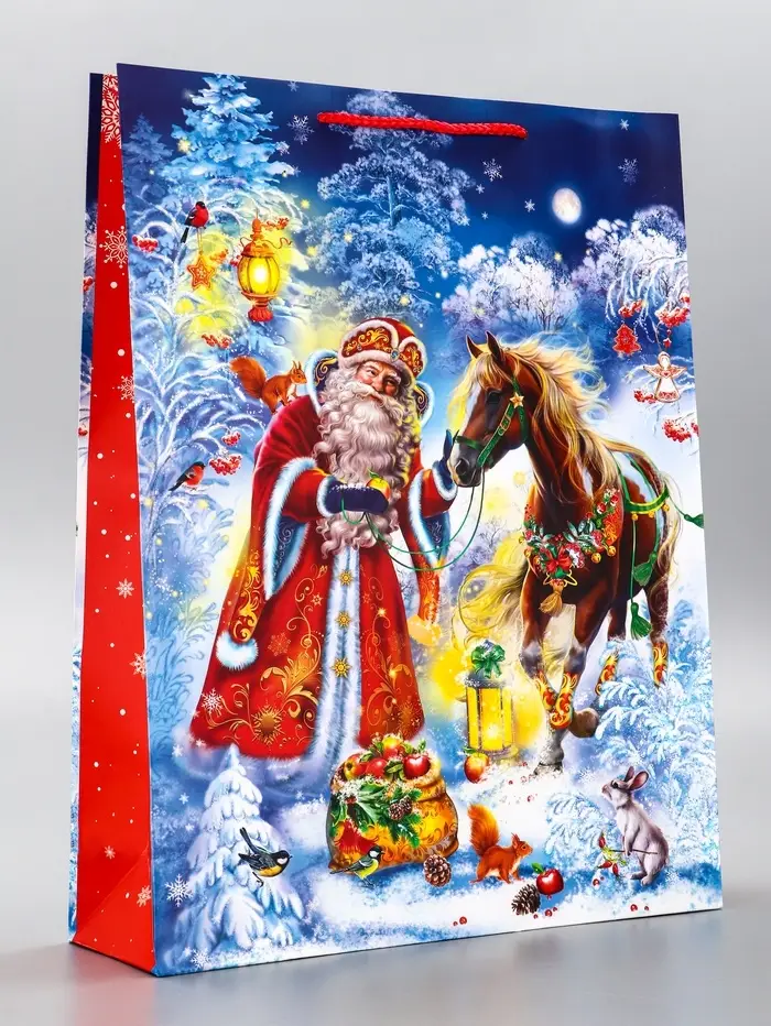 Пакет подарочный новогодний ламинированный, «Дед Мороз и Конь» , 33×10×42.5 см