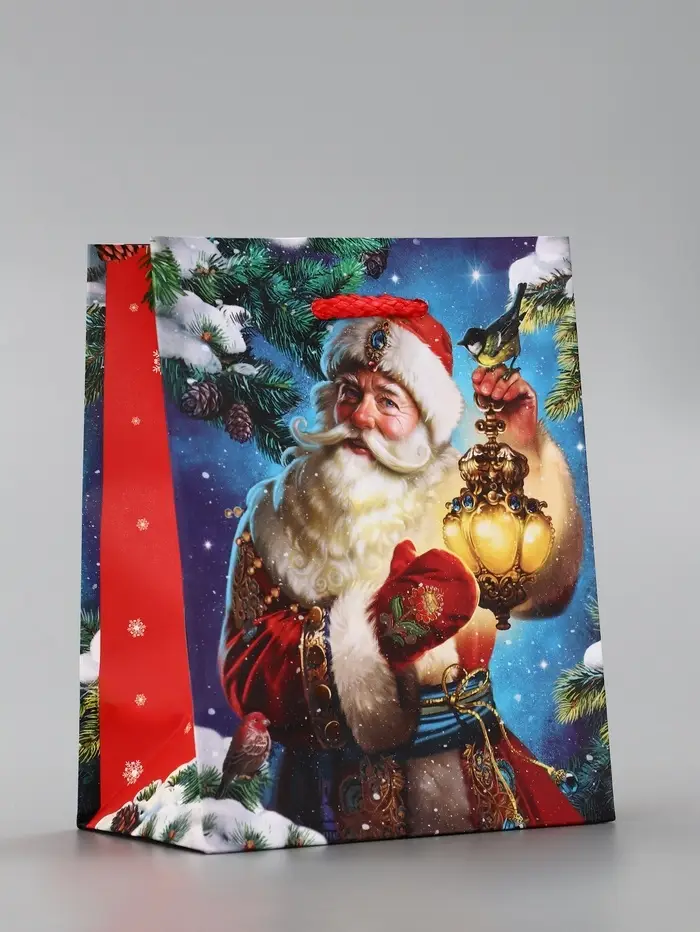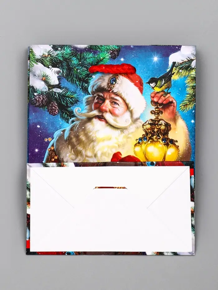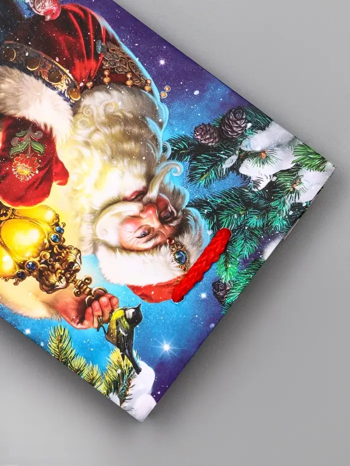 Пакет подарочный новогодний ламинированный, «Синички» , 11.5×6.5×14.5 см