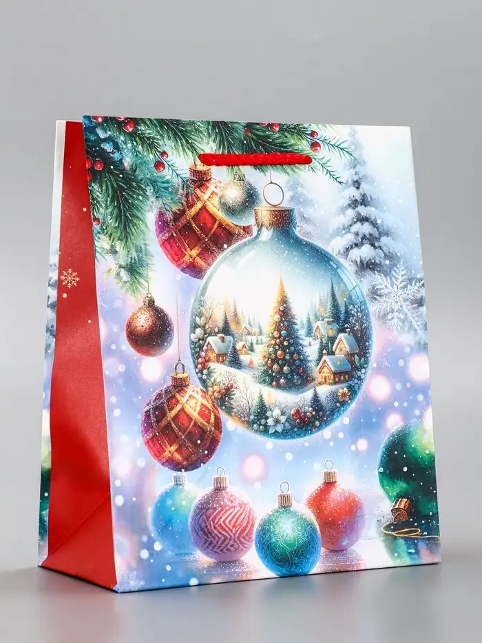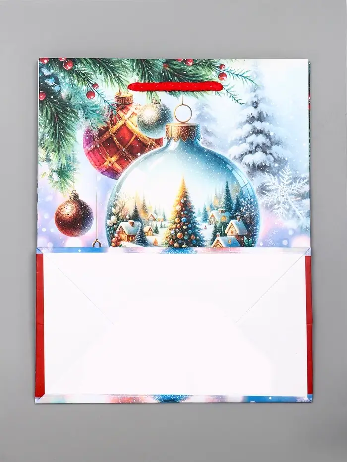 Пакет подарочный новогодний ламинированный, «Ёлка в шаре» , 18×10×22.3 см