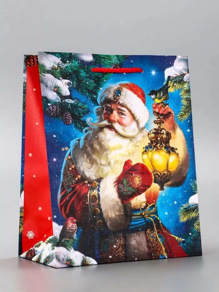 Пакет подарочный новогодний ламинированный, «Дед Мороз» , 18×10×22.3 см