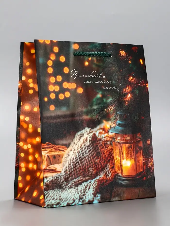 Пакет подарочный новогодний ламинированный, «Уют» , 18×10×22.3 см