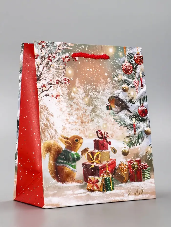 Пакет подарочный новогодний ламинированный, «Зверята ждут Новый Год » , 18×10×22.3 см