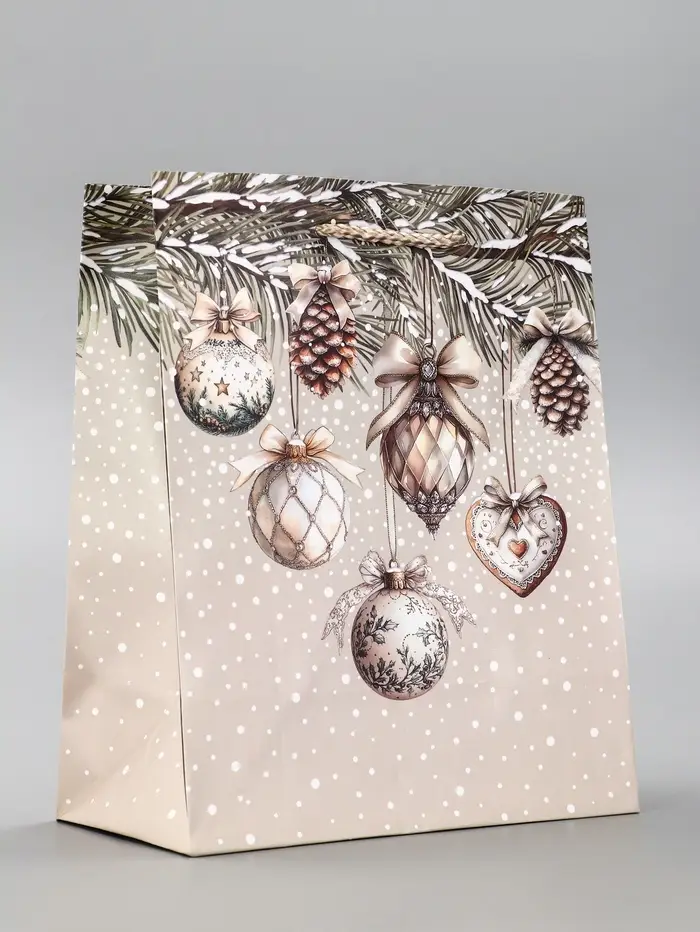 Пакет подарочный новогодний ламинированный, «Новогодние игрушки» , 18×10×22.3 см