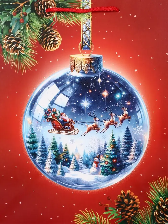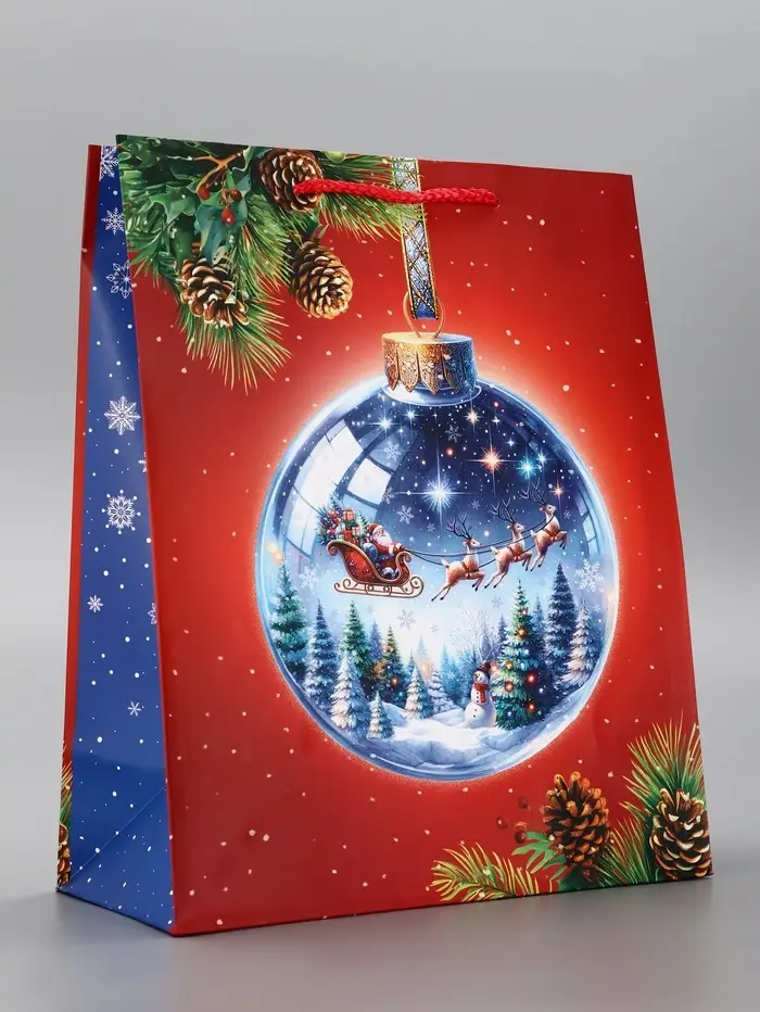 Пакет подарочный новогодний ламинированный, «Шар» , 26×12×32 см