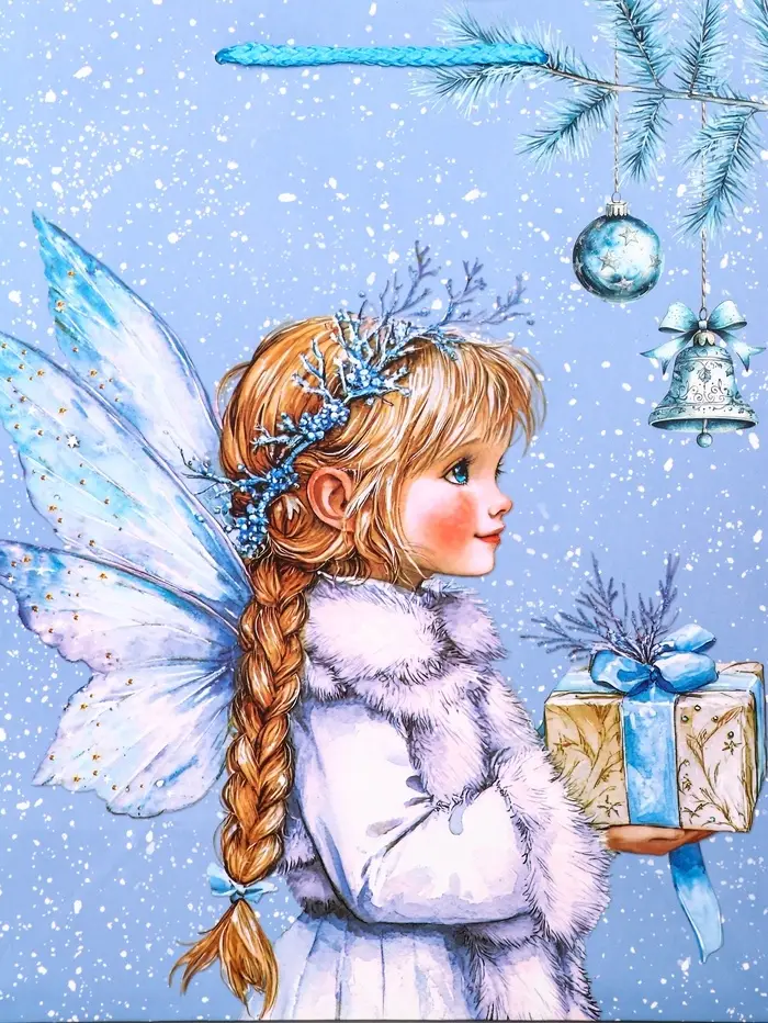 Пакет подарочный новогодний ламинированный, «Новогодний ангел» , 26×12×32 см