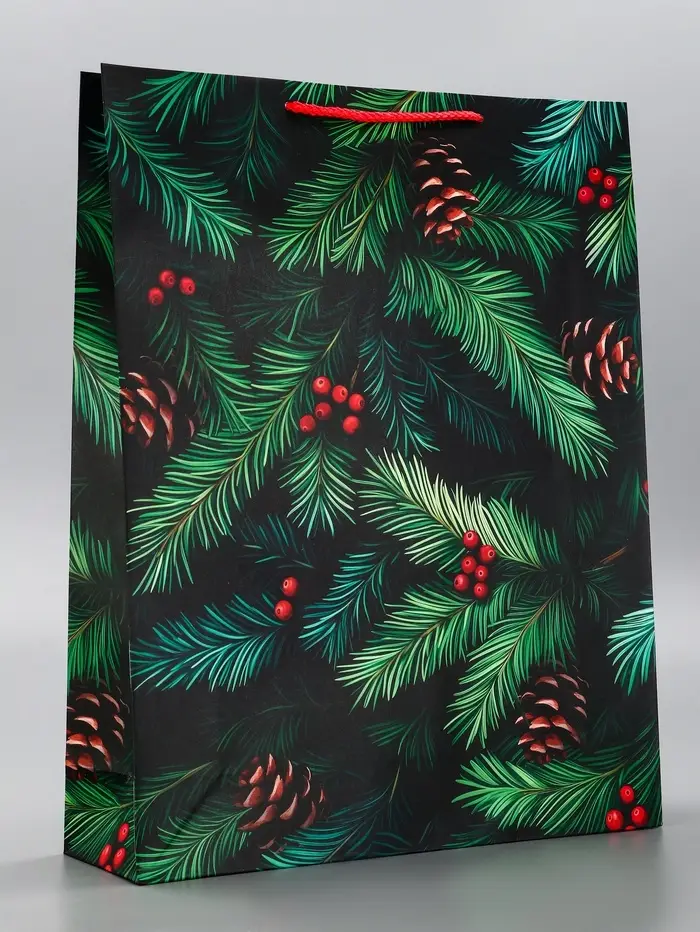Пакет подарочный новогодний ламинированный, «Шишки» , 33×10×42.5 см