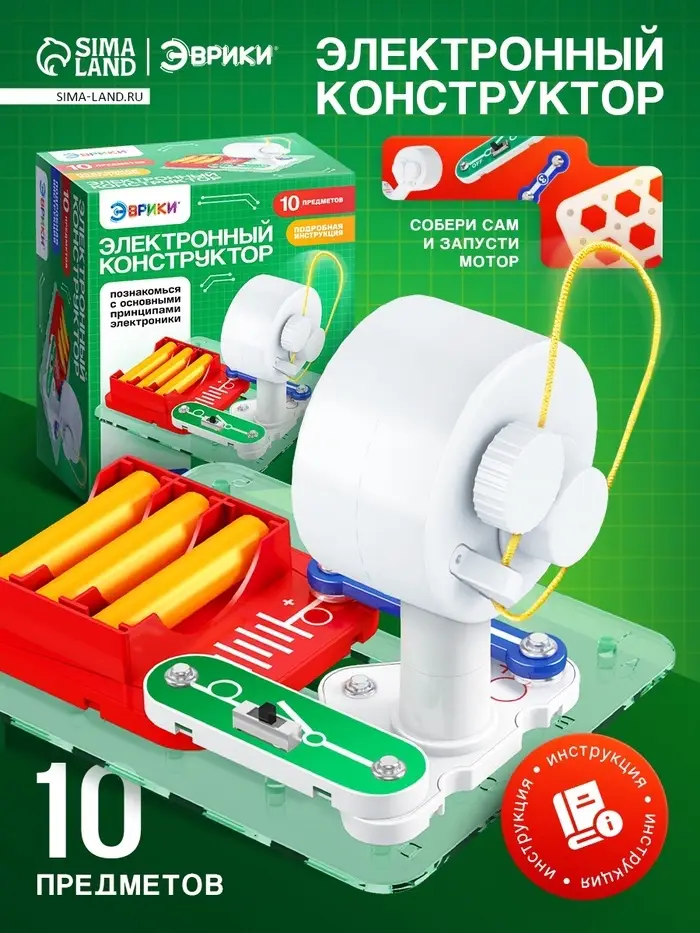 Создай вращающийся механизм и пойми силу электричества! Электронный конструктор «Мотор» — это практический набор для изучения основ электромеханики. Ребёнок собирает рабочую схему и наблюдает, как электрическая энергия превращается во вращательное движение.