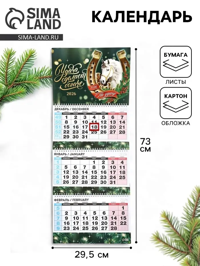 Календарь квартальный 2026 «Конь с цветами»