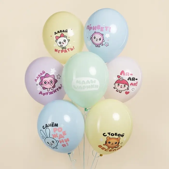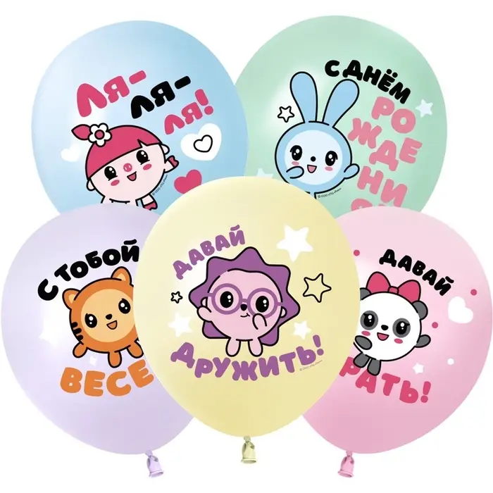 Воздушные шары латексные 12" «Малышарики, С днем рождения!», 25 шт., 2-сторонние, МИКС