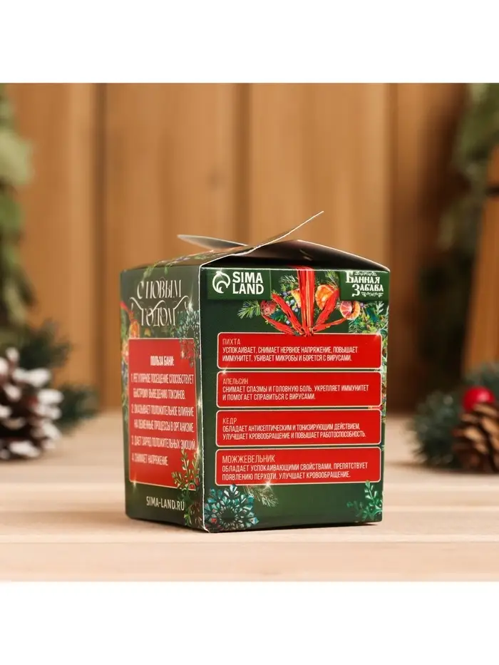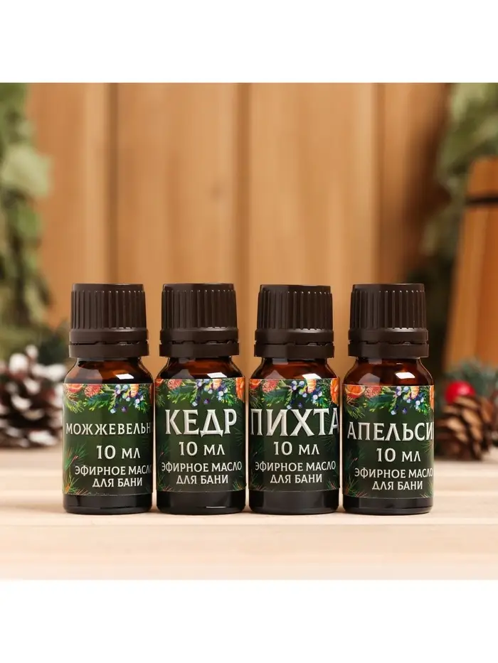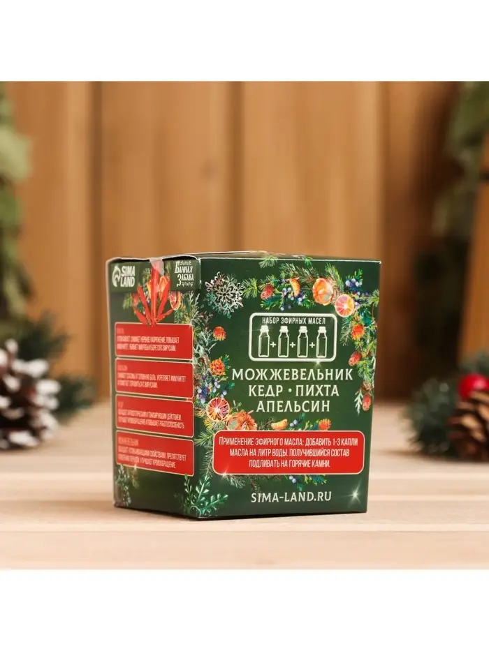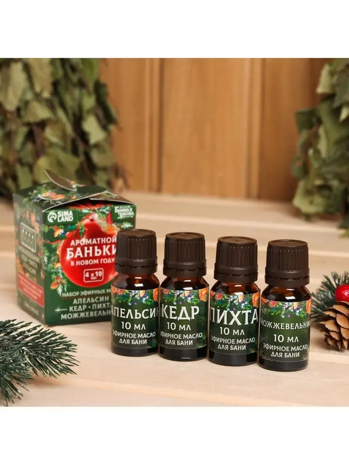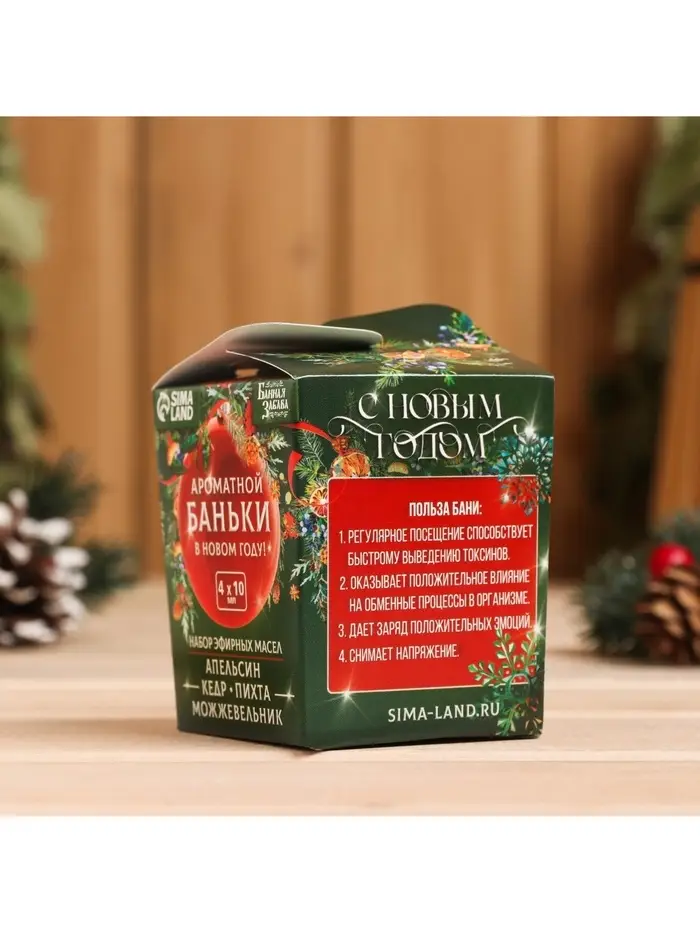 Новогодний набор эфирных масел «Ароматной баньки», в подарочной коробке, апельсин, кедр, пихта, можжевельник, 4 шт. по 10 мл