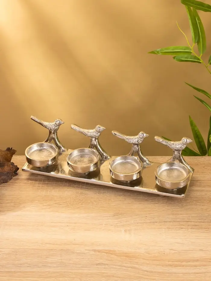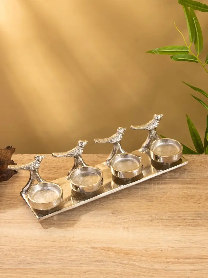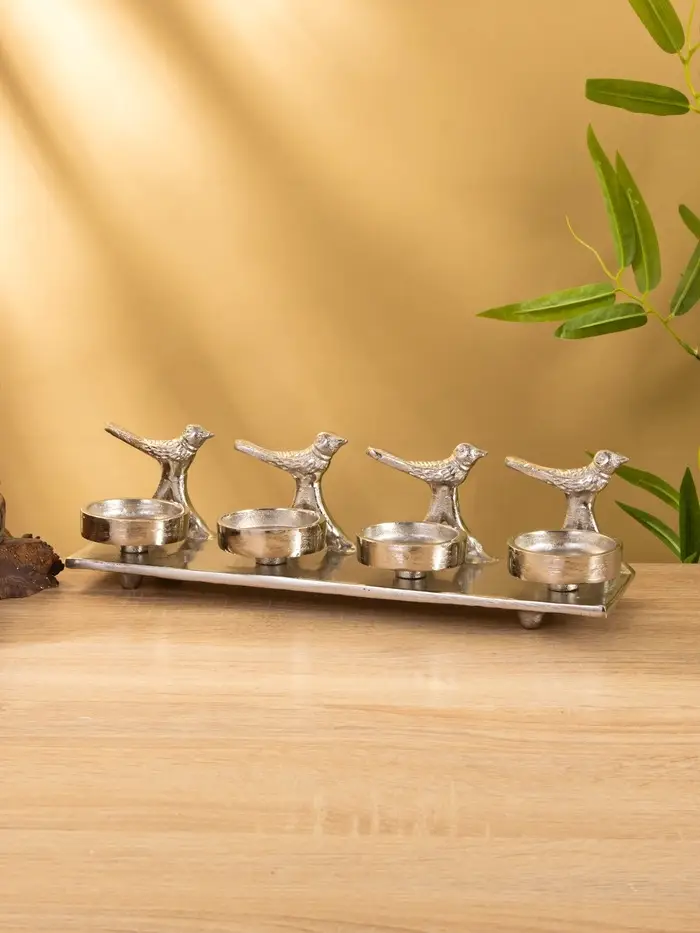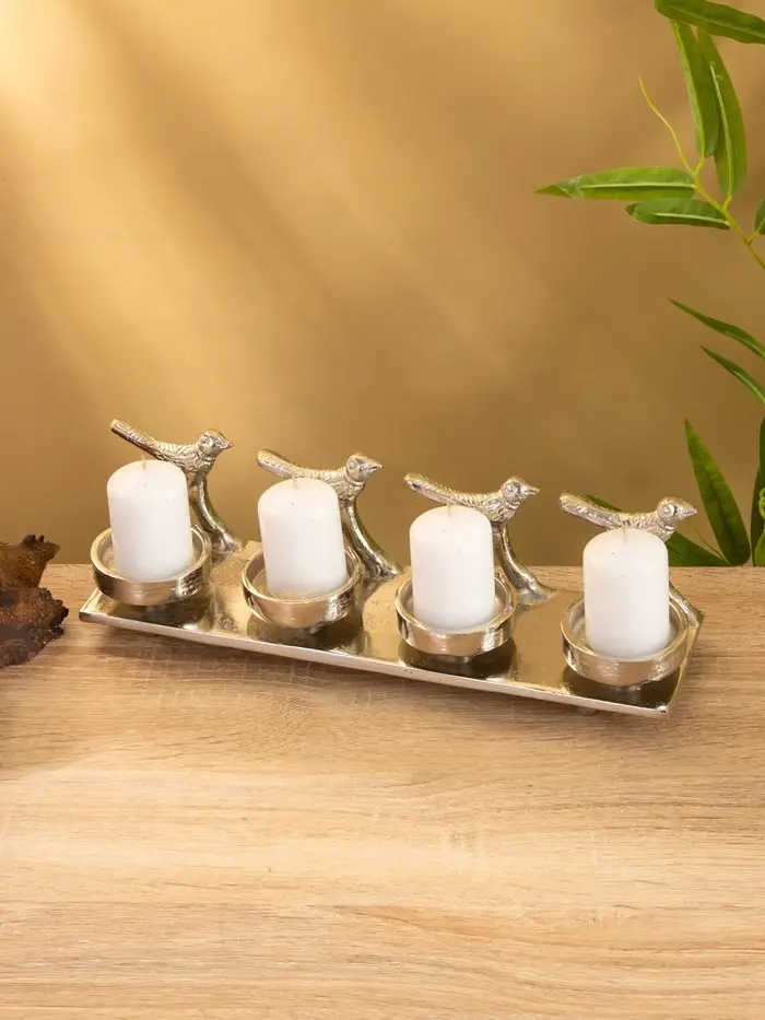Подсвечник на 4 свечи "Птенцы" алюминий 32,5х9х7 см
