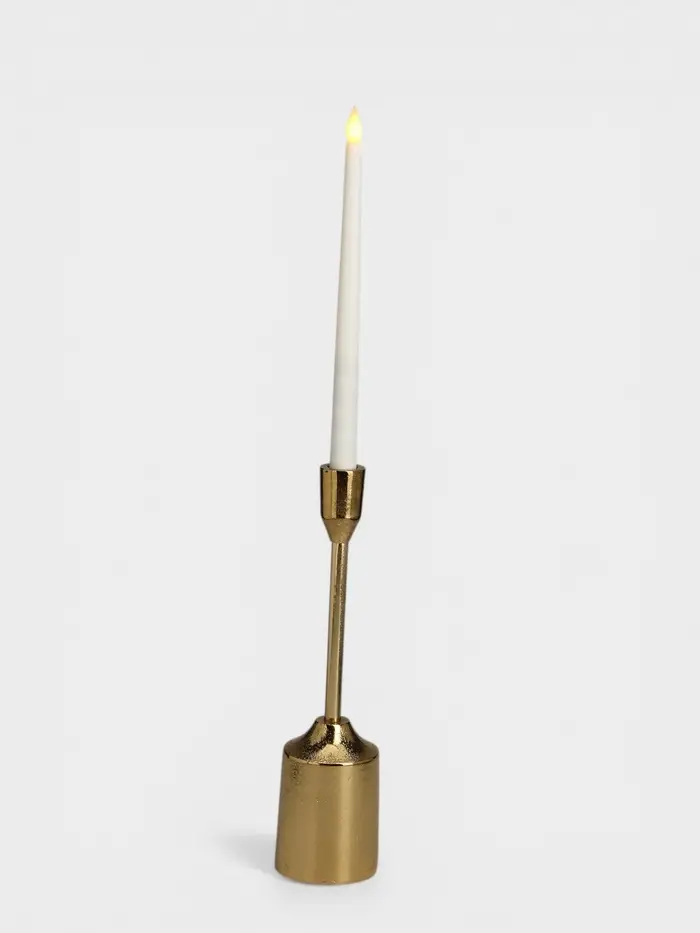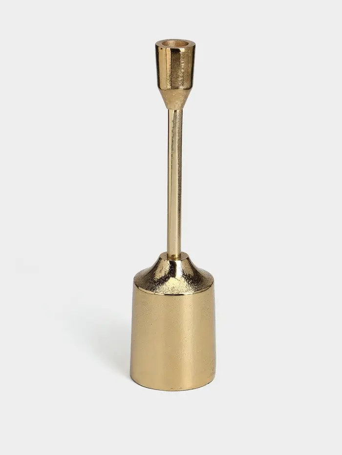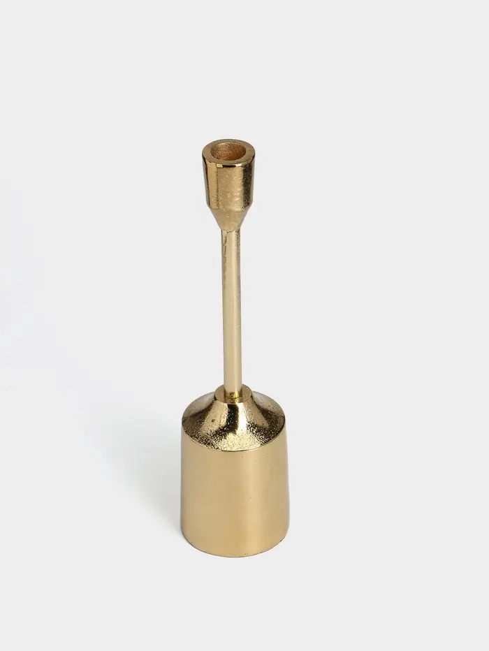 Золотое сияние для вашего интерьера. Подсвечник «Доблесть» из золотистого алюминия — это строгий и элегантный акцент, создающий атмосферу уюта и торжественности. Его классическая форма и благородный оттенок делают его универсальным элементом декора для любого пространства.