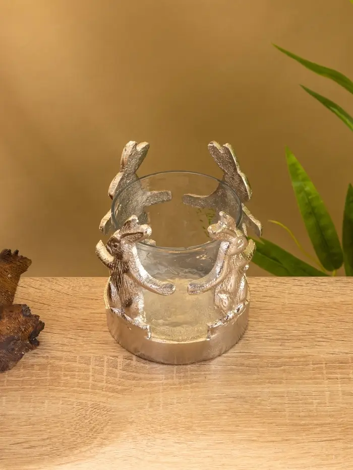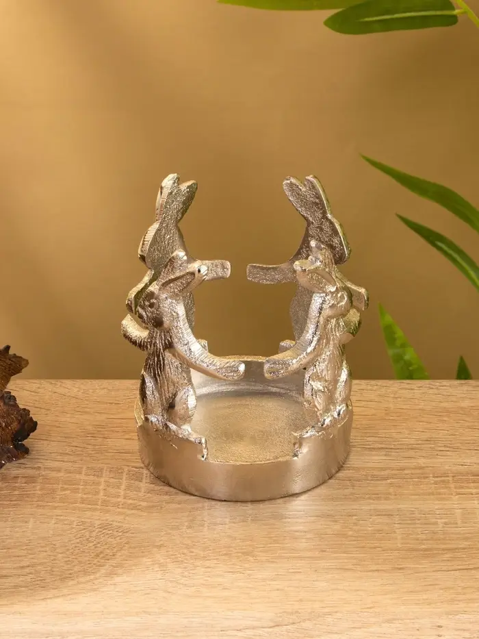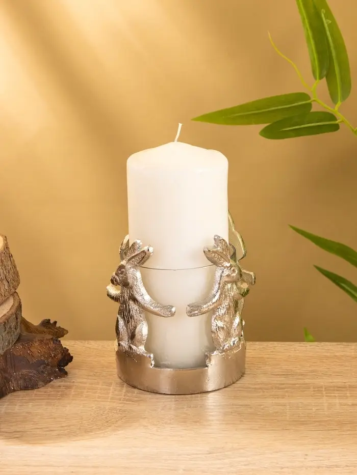 - Трогательный символ: Фигурки зайцев, бережно склонившихся друг к другу, олицетворяют любовь, верность и нежность. Этот образ привносит в пространство тепло и гармонию, превращая обычный подсвечник в предмет с глубоким смыслом.