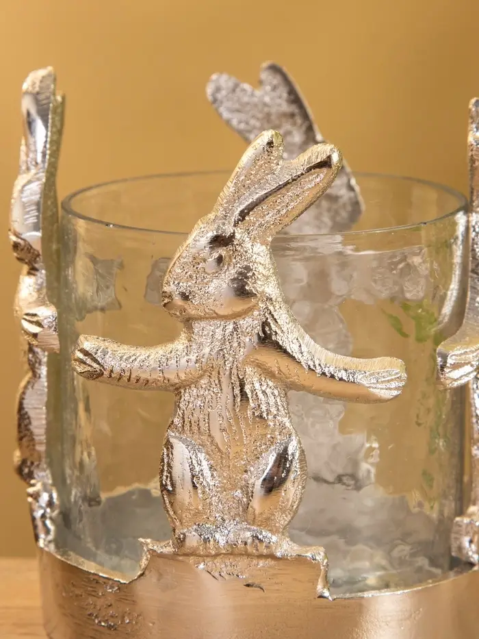 Подсвечник со стеклом «Влюбленные зайцы», 8.5×8.5×9 см, алюминий