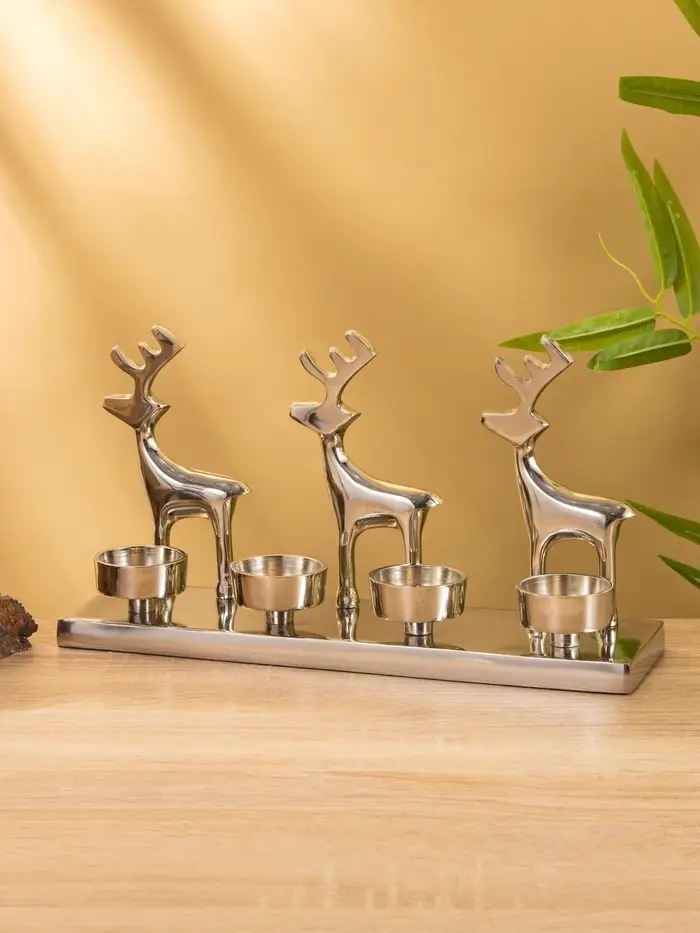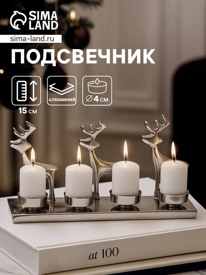 Подсвечник «Трио оленей» — не просто держатель для свечей, а новогодний акцент, который создаёт атмосферу без лишних слов. Его размеры позволяют разместить на каминной доске, столе или подоконнике, а силуэты трёх оленей в серебристом алюминии мягко отражают свет, не перетягивая внимание на себя.