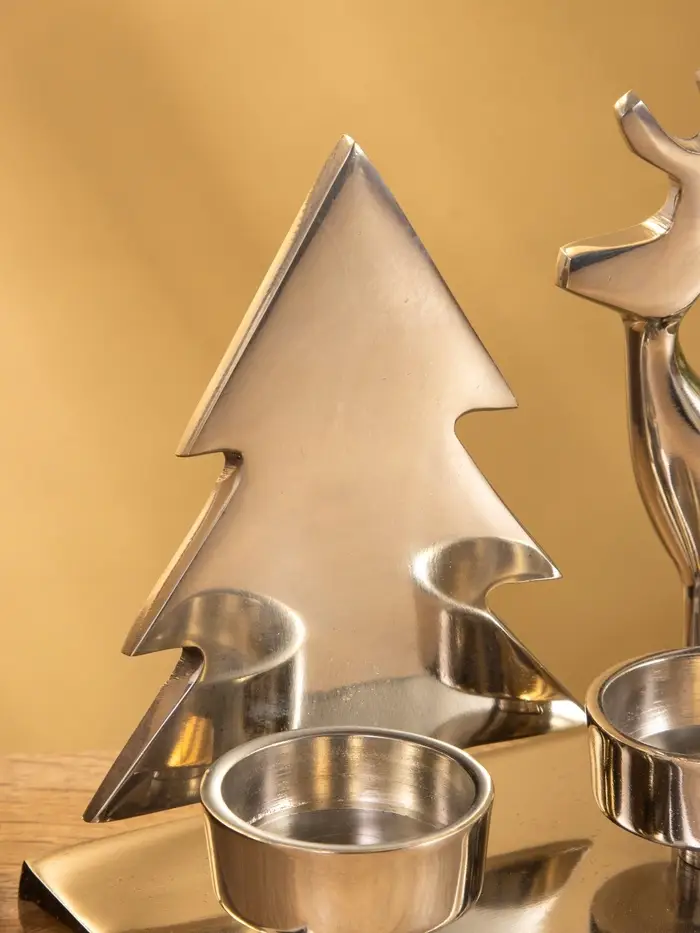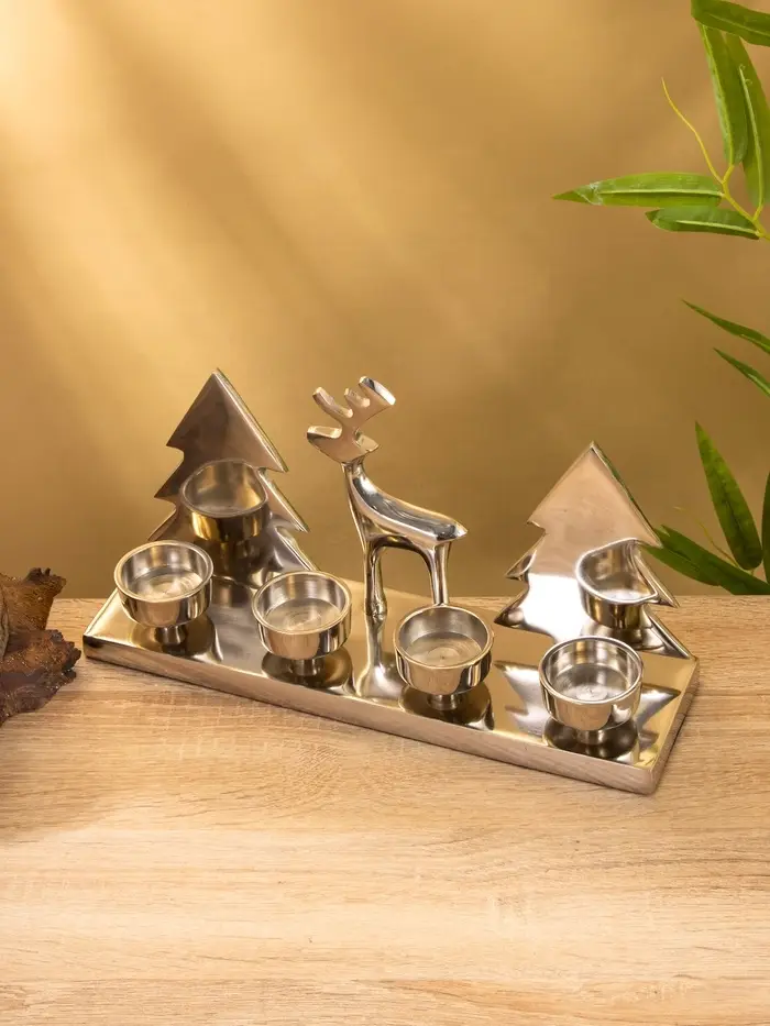 Подсвечник на 4 свечи "Рудольф и ёлки" алюминий 30х9х15 см