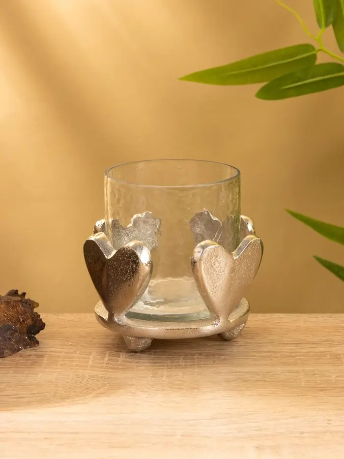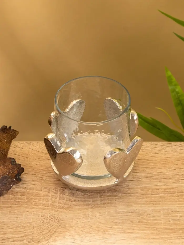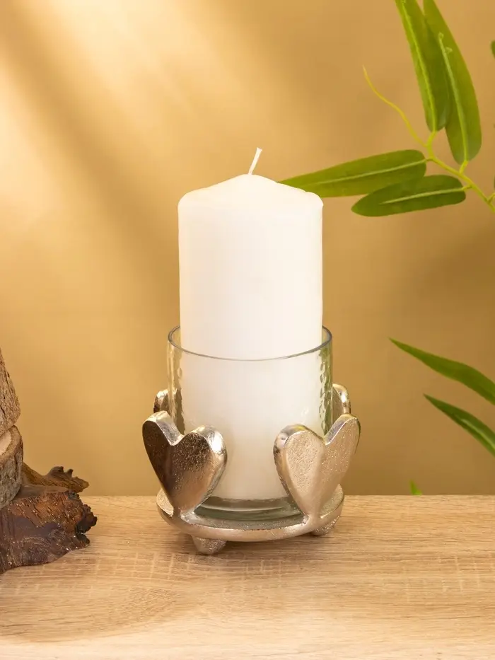 Сердце, застывшее в свете. Подсвечник «Сердце» из алюминия и стекла — это элегантный акцент для создания особой атмосферы. Минималистичный дизайн в виде сердца сочетает холодный блеск металла и чистоту прозрачного стекла, рождая игру отражений и мягкого свечения.