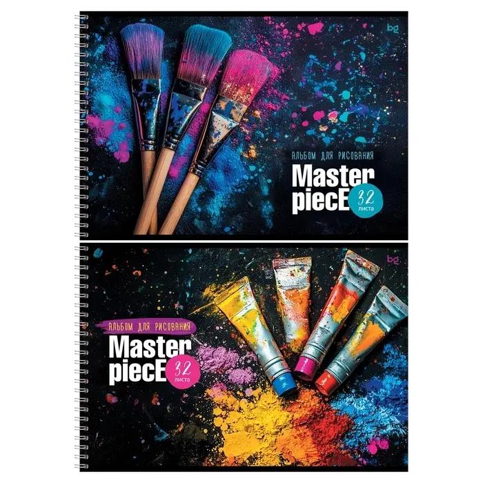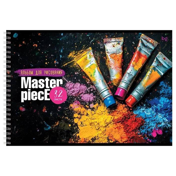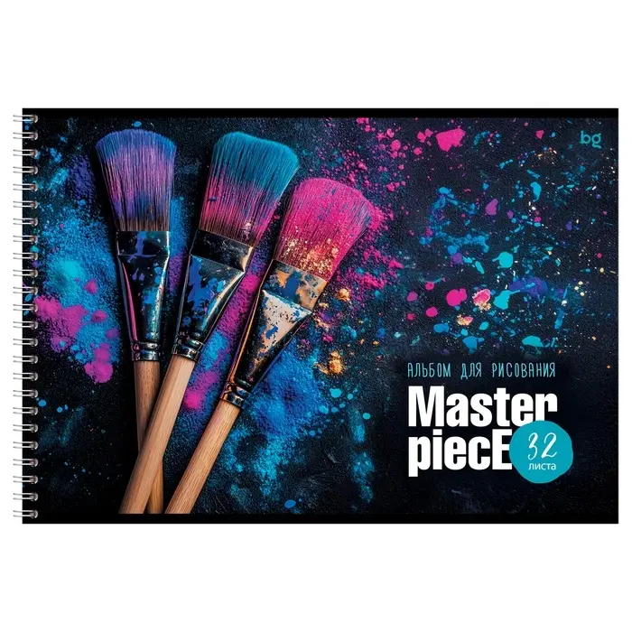Альбом для рисования А4, 32 листа на гребне, BG «Шедевр», обложка мелованный картонМИКС