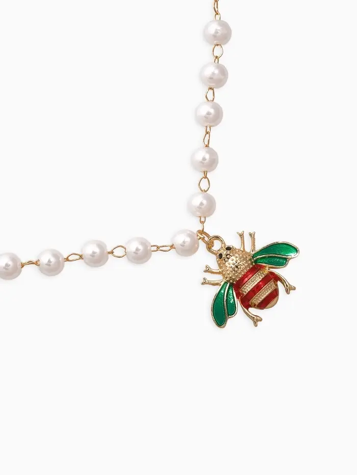 Белоснежные жемчужины на пластиковой основе создают ощущение свежести и чистоты, а металлическая подвеска с тематикой насекомых привносит шарм и оригинальность. Такое колье станет отличным выбором для девочек и женщин, ценящих универсальность и эмоциональную глубину, легко вписываясь в повседневные наряды или праздничные ансамбли.