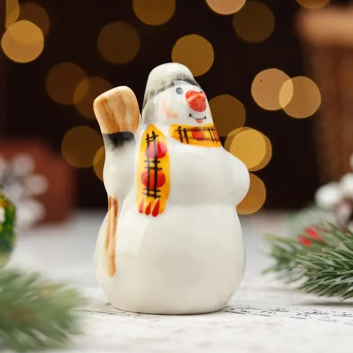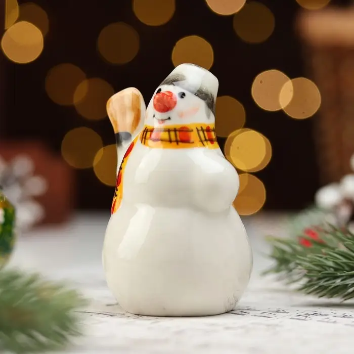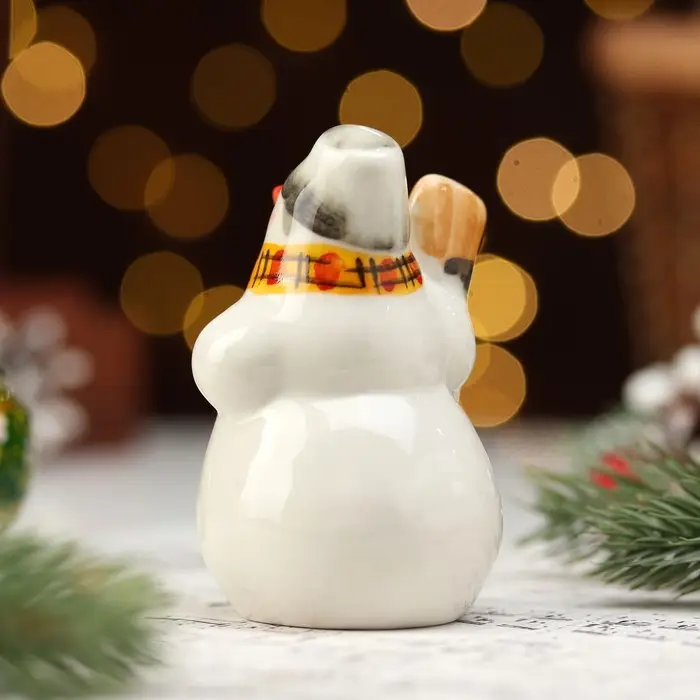 Сувенир "Снеговик с метлой", 10 см, фарфор