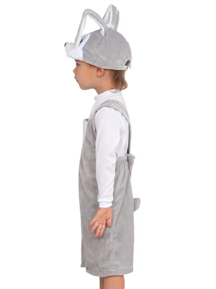 Карнавальный костюм "Зайчик серый" плюш, полукомбинезон, шапочка, 3-6 лет, рост 98-116 см