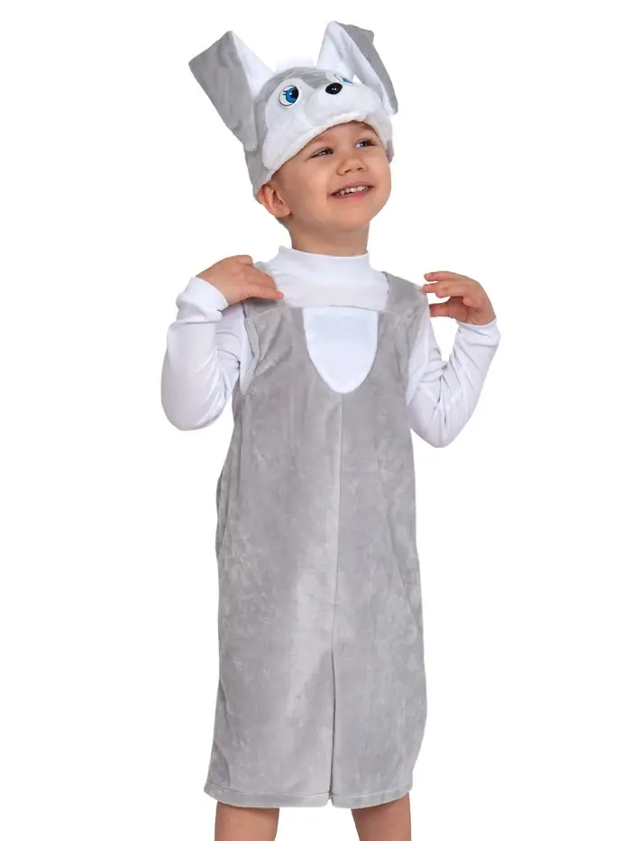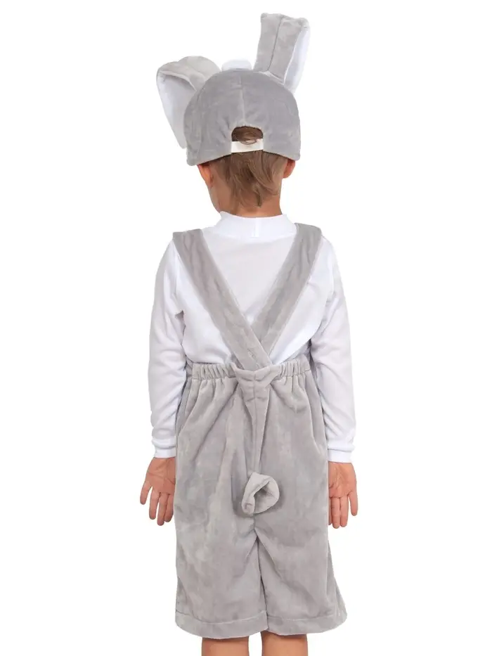 Карнавальный костюм "Зайчик серый" плюш, полукомбинезон, шапочка, 6-9 лет, рост 122-134 см