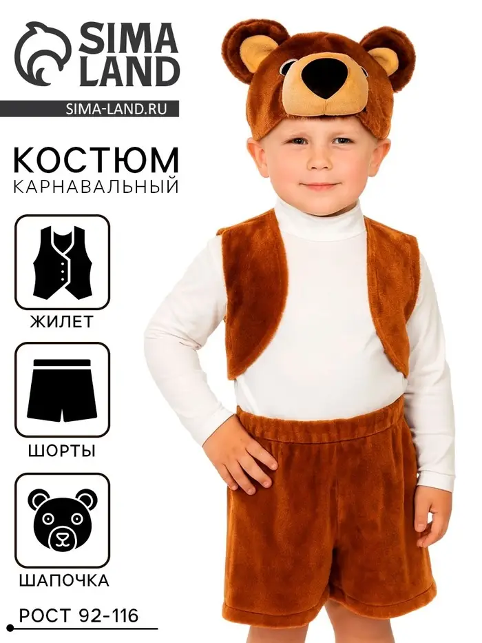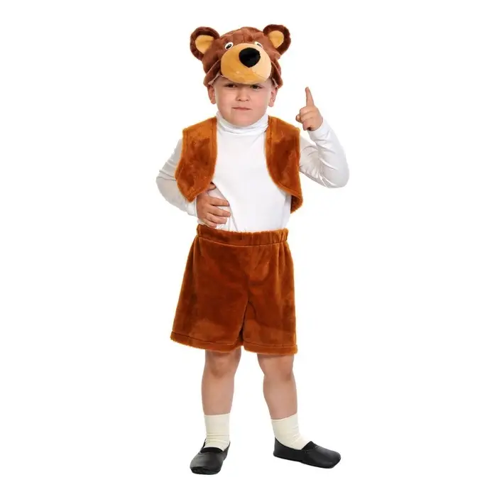 Карнавальный костюм «Бурый мишка», плюш-лайт, жилет, шорты, маска, рост 92-116 см