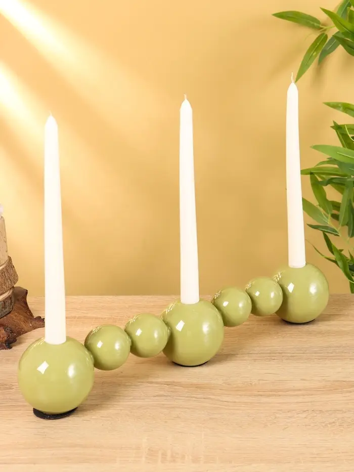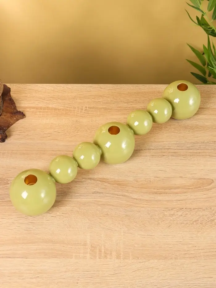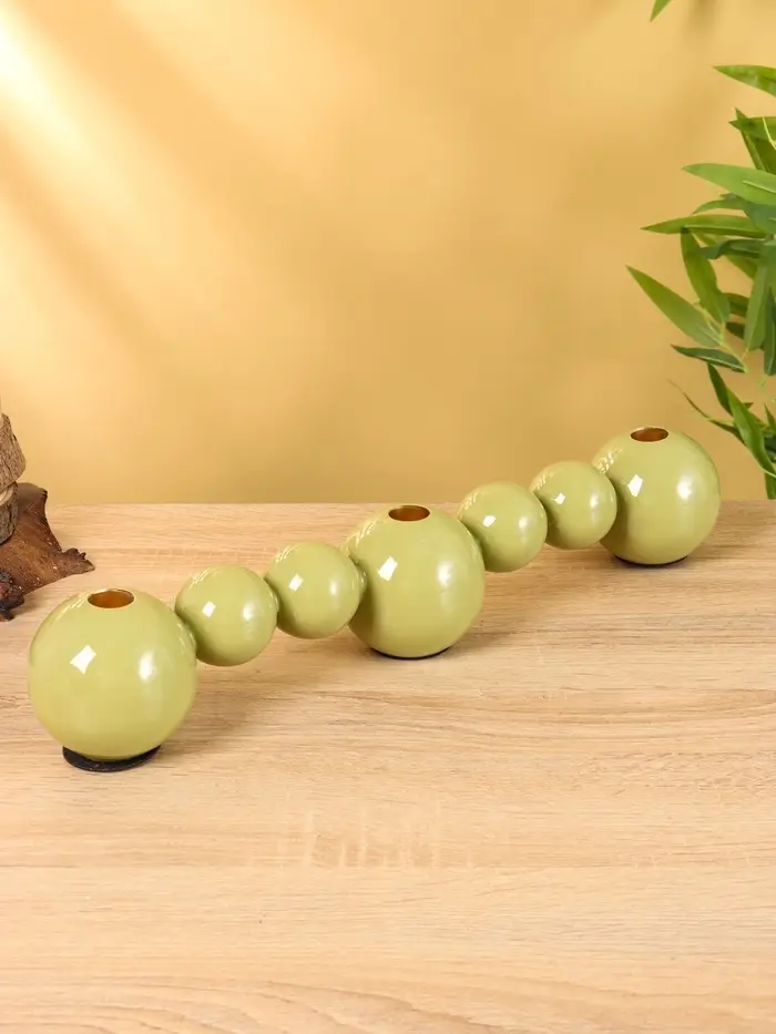 Подсвечник на 3 свечи «Бусы», с 7 сферами, 44×8×8 см, оливковый