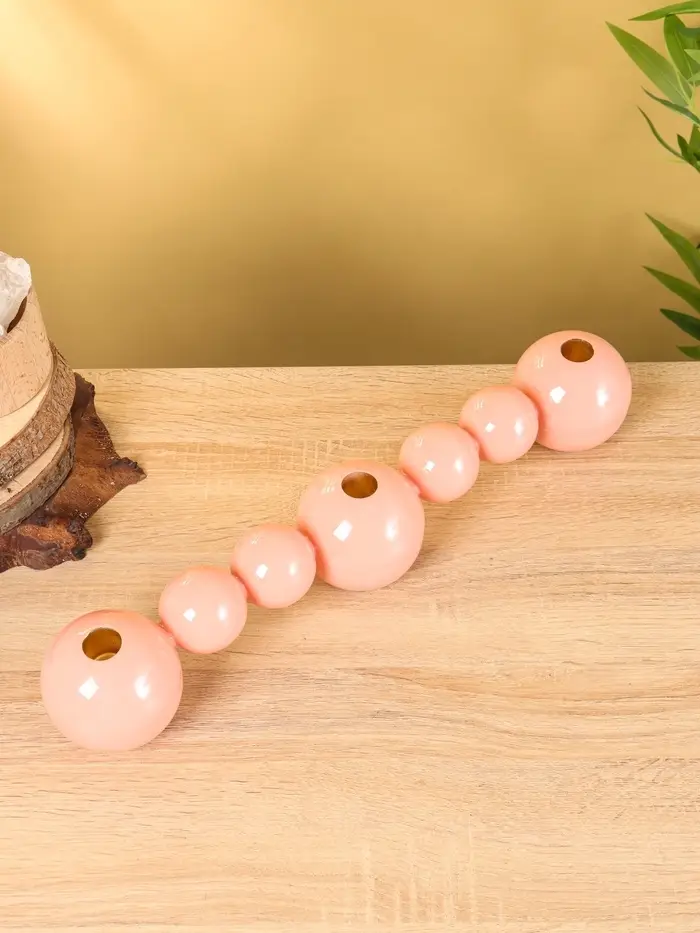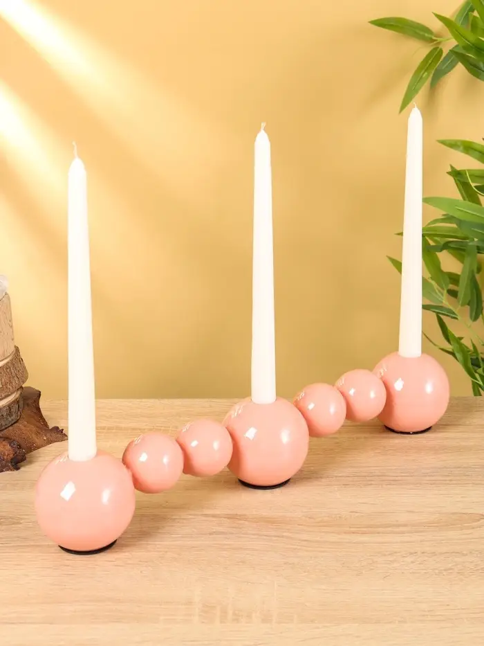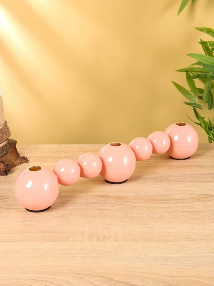 Подсвечник на 3 свечи «Бусы», с 7 сферами, 44×8×8 см, пудровый