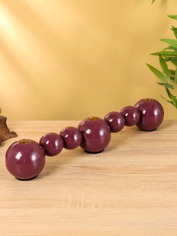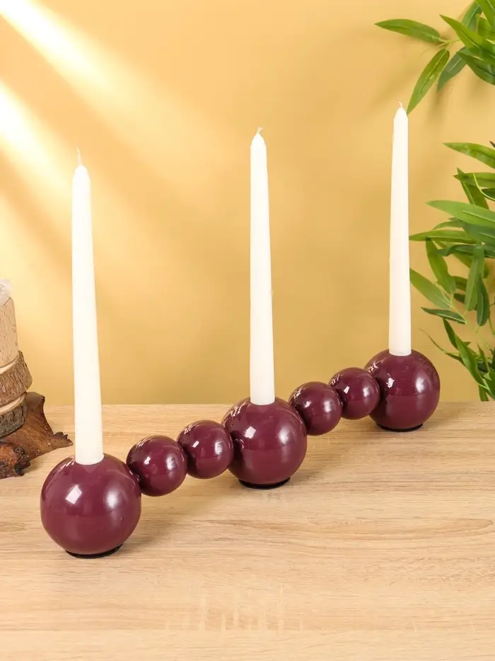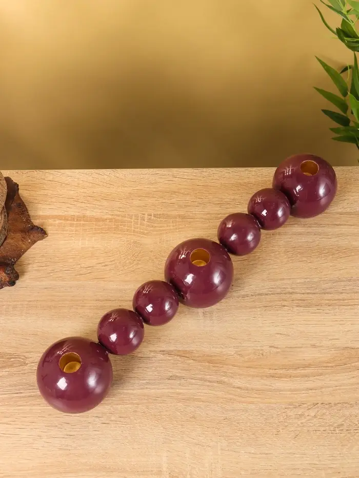 Подсвечник на 3 свечи «Бусы», с 7 сферами, 44×8×8 см, баклажановый