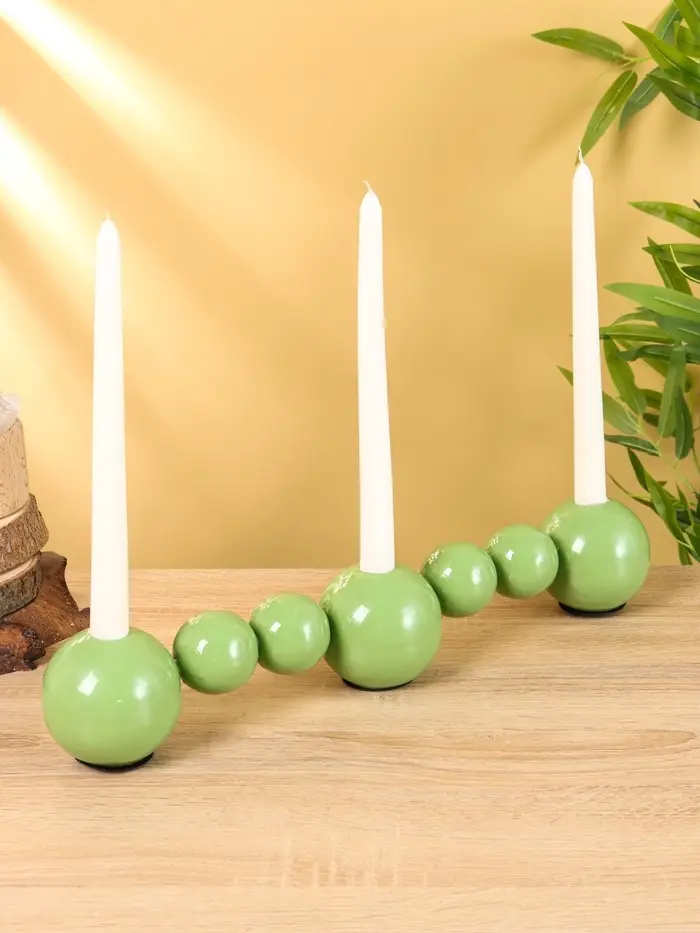 Подсвечник на 3 свечи «Бусы», с 7 сферами, 44×8×8 см, кипарис