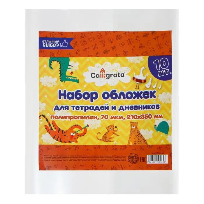 Набор обложек ПП 10 штук, 210 х 350 мм, 70 мкм, для тетрадей и дневников (в мягкой обложке)