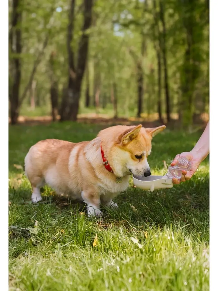 Поилка для собак помогает напоить питомца вне дома. Поилка для собак изготовлена из пищевого пластика, который отлично сохраняет свежесть воды в течение дня. Собаке очень удобно пить из нее воду. С поилкой для собак прогулки с питомцем в летнее время станут настоящим удовольствием и вам больше никогда не придется искать воду и поить собаку из ладоней! И больше никакого питья из луж. Также, бутылка для собак отлично подходит для путешествий, во время посещения ветклиник, груминг салонов и т.д.