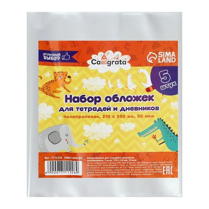 Набор обложек ПП 5 штук, 210 х 350 мм, 50 мкм, для тетрадей и дневников (в мягкой обложке)