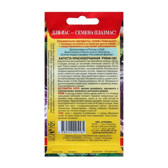 "Среднеспелый сорт, формирует урожай за 120-130 дней от высадки рассады. Ценится за высокую урожайность (10 кг/м2) и дружное созревание. Кочаны плотные, округло-плоские, темно-фиолетовые, массой 1-2 кг. Хранятся до января. Сорт устойчив к комплексу болезней и растрескиванию кочанов. Широко распространен, возделывается в разных зонах.