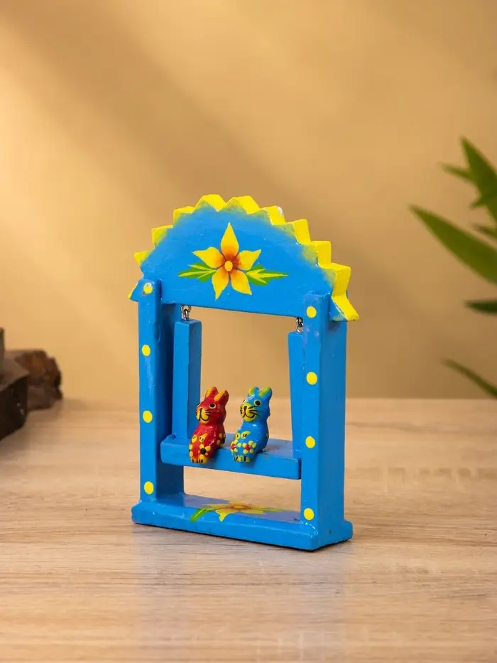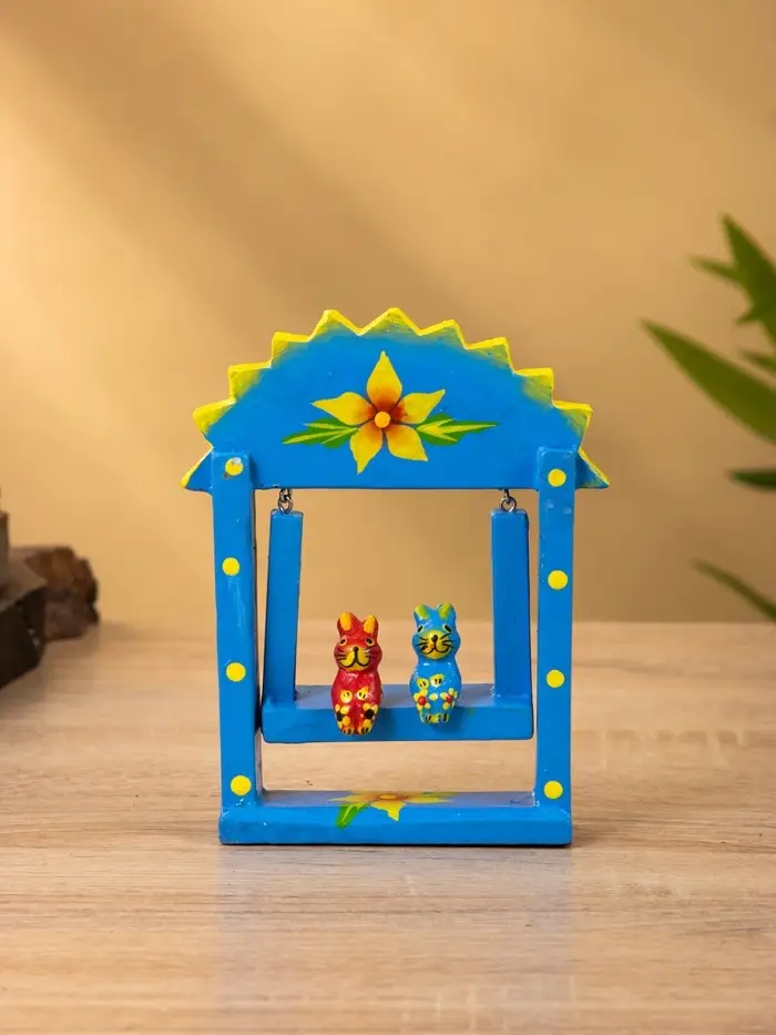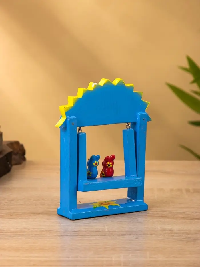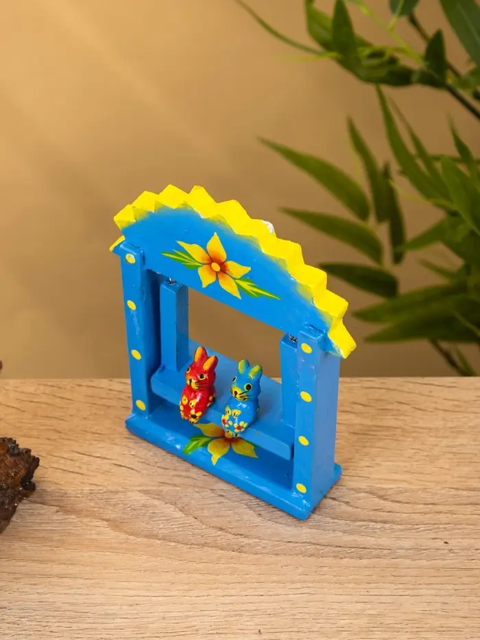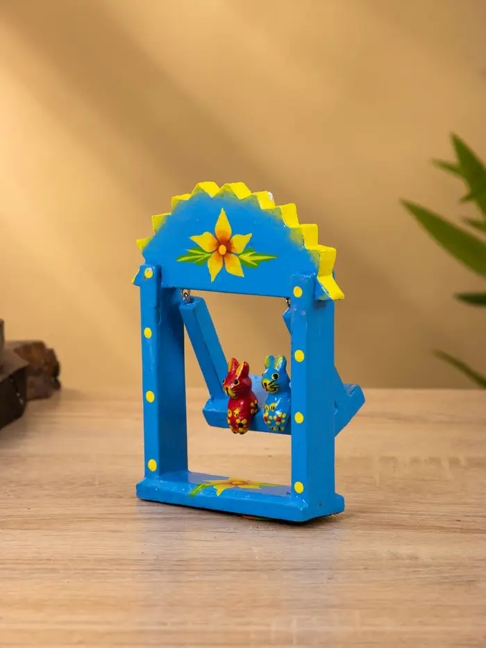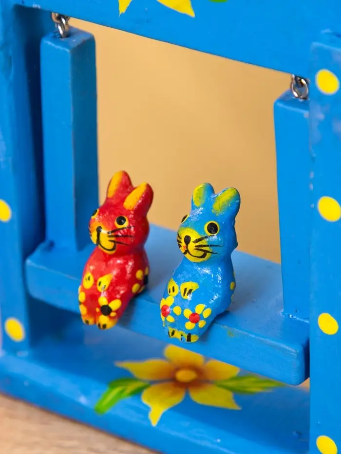 Сувенир "Зайки на качелях" дерево 11х5,4х14,4 см, цв. синий