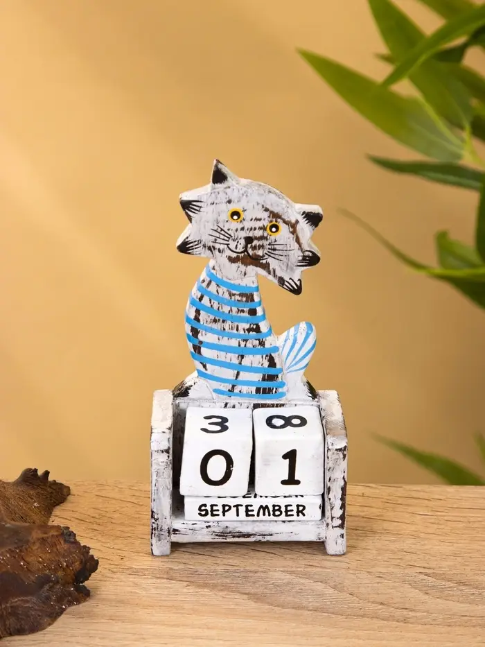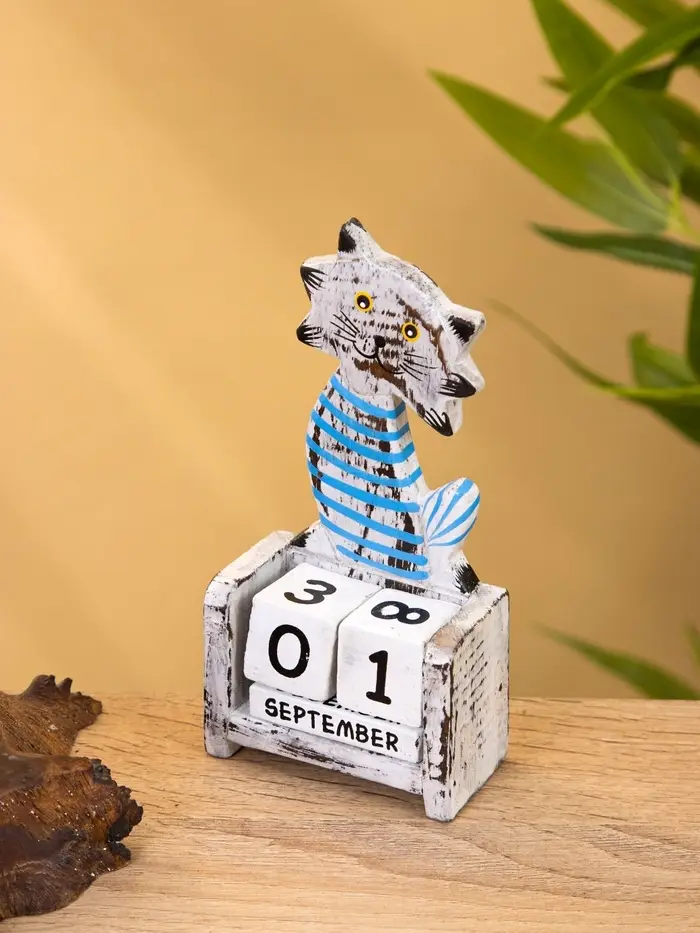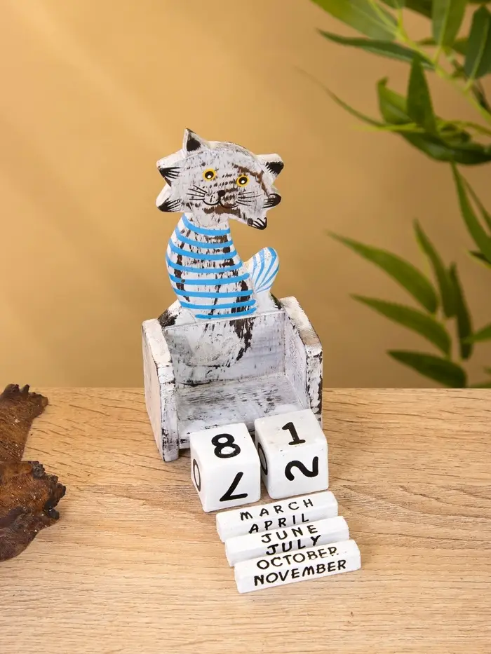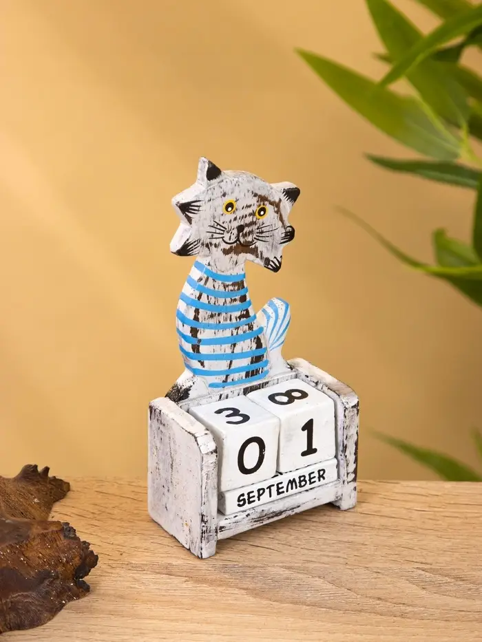 Календарь настольный "Полосатый кот" дерево 7х4х14 см, цв. серо-голубой