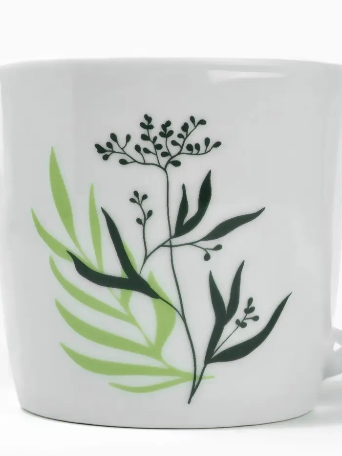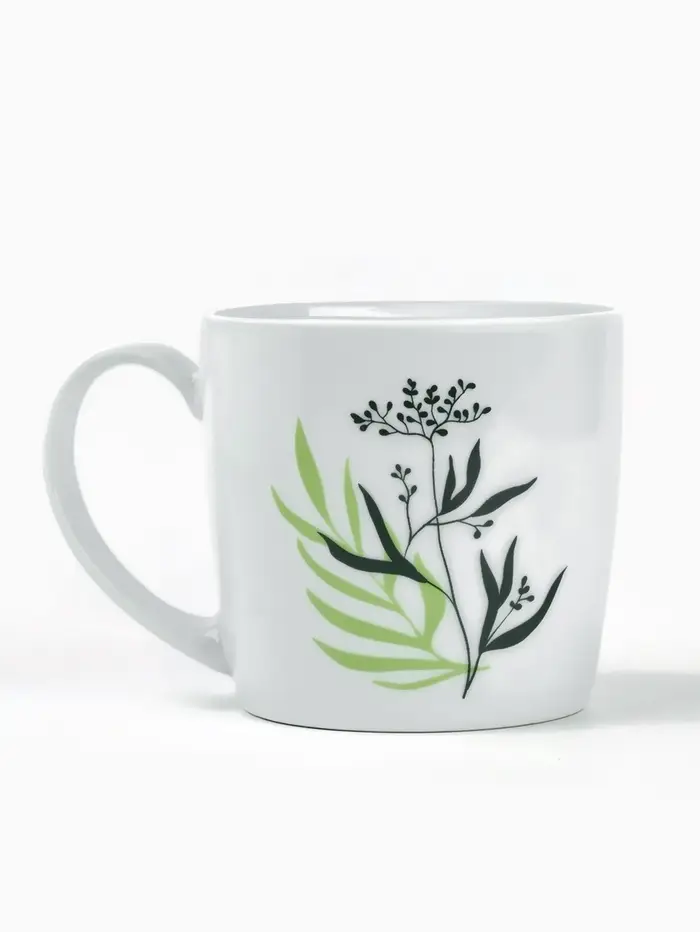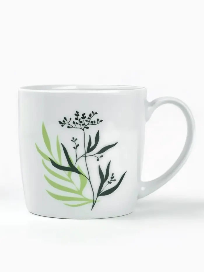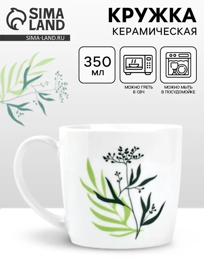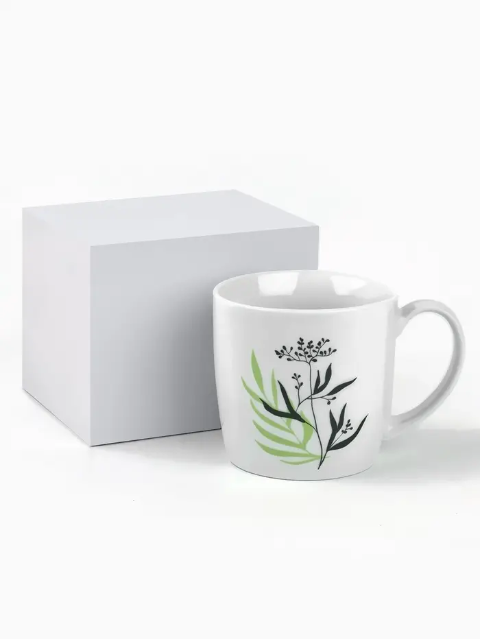 - Стильный дизайн: белая кружка с природным рисунком имеет гладкую поверхность и элегантную форму, которая подойдёт для любого интерьера.