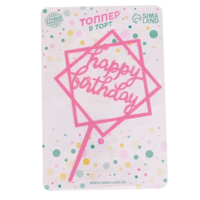 Топпер для торта «С днём рождения», розовый
