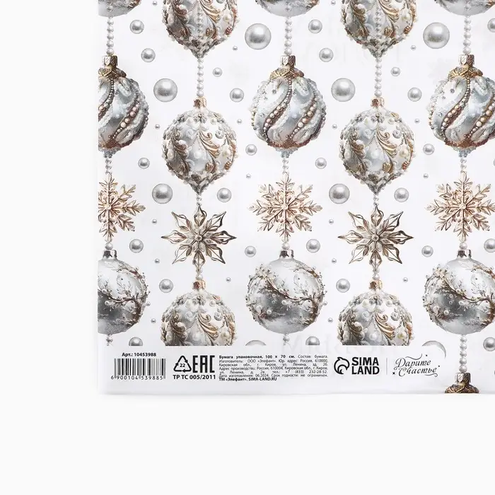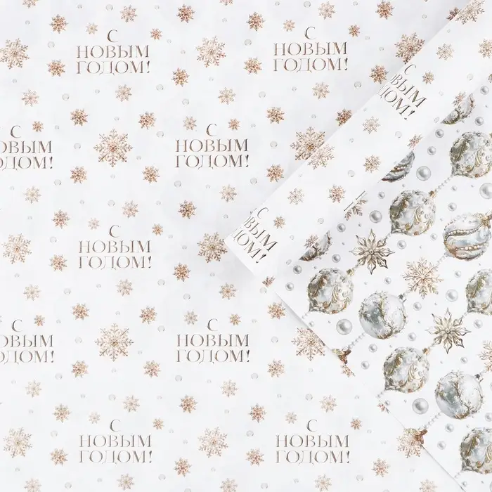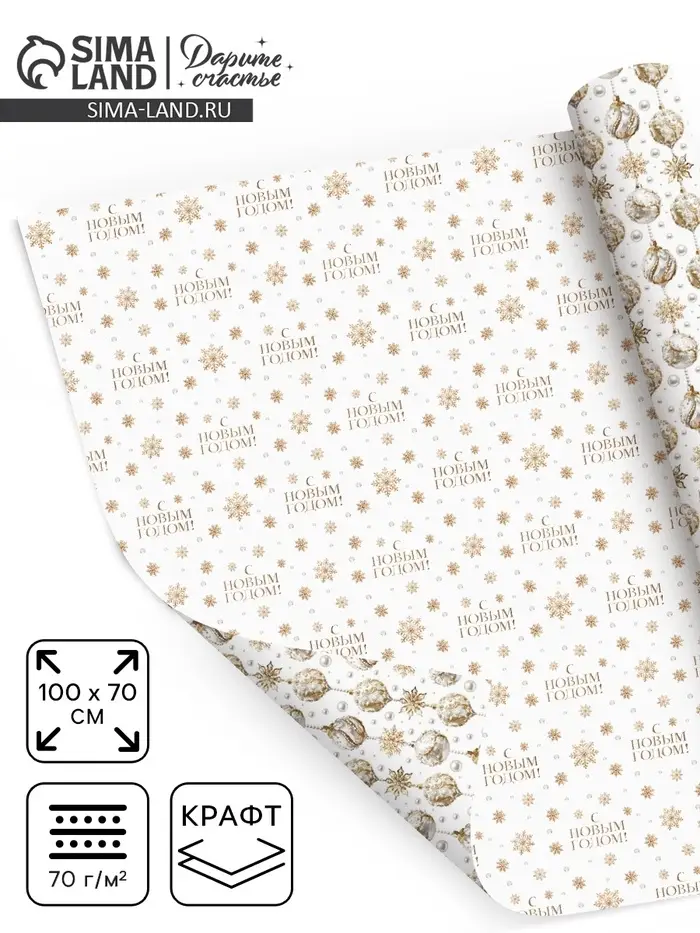Упаковочная бумага на новый год, двухсторонняя крафтовая «Новогодние шары», 70×100 см