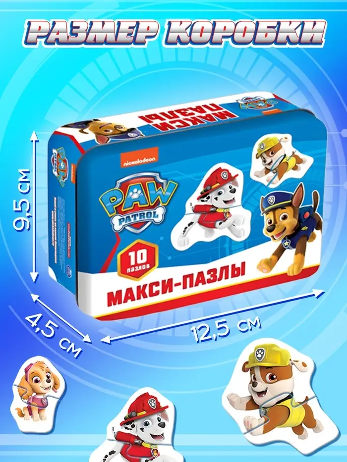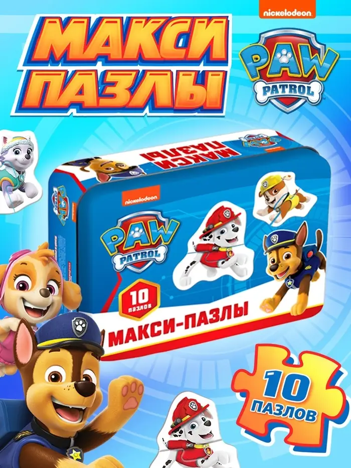 Макси-пазлы в металлической коробке «Щенячий патруль», 20 деталей, 10 пазлов